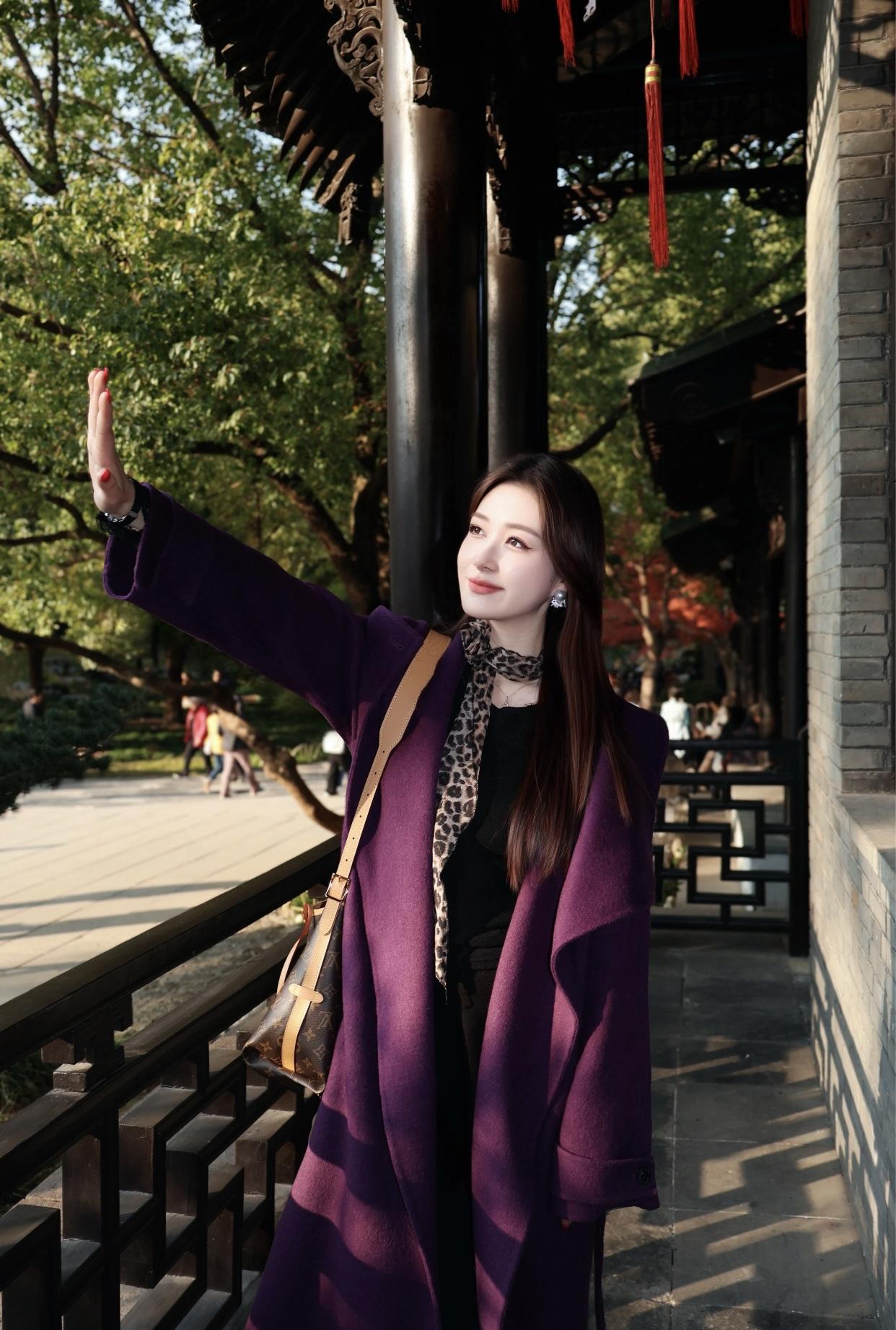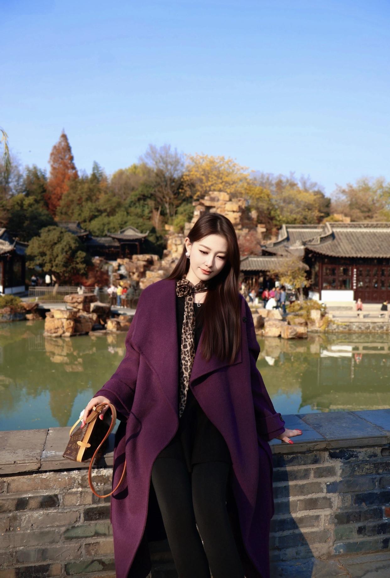 谁是你心中的国风美人秋日漫步,紫衣女子与古风园林的完美邂逅。