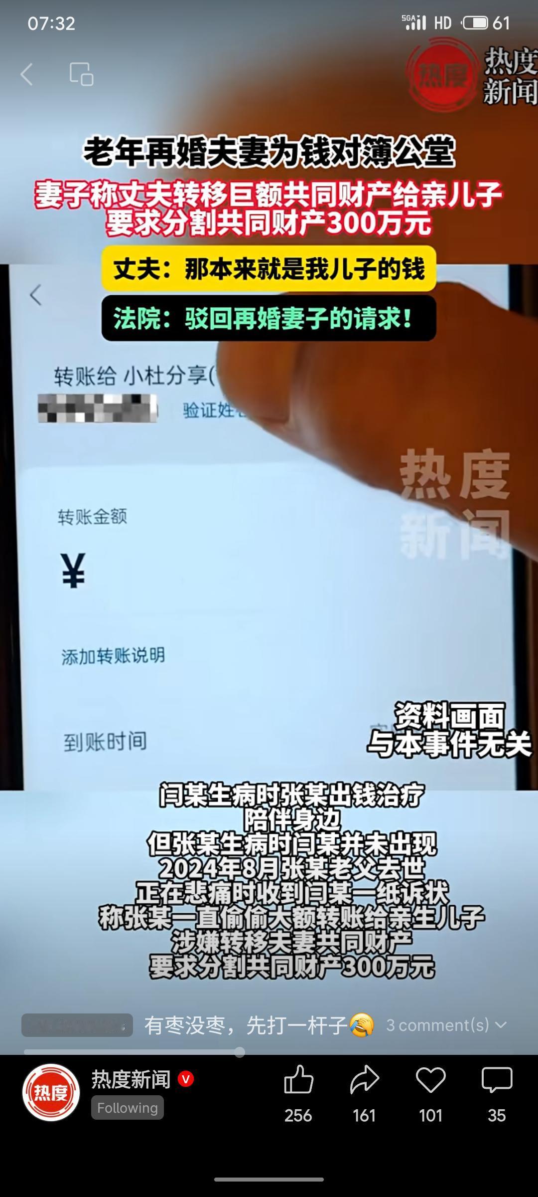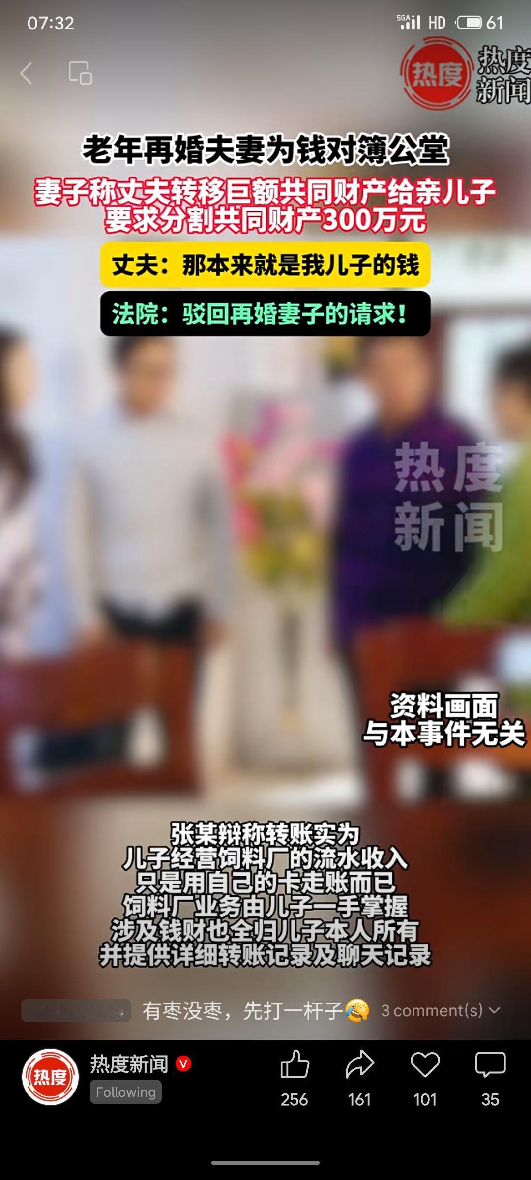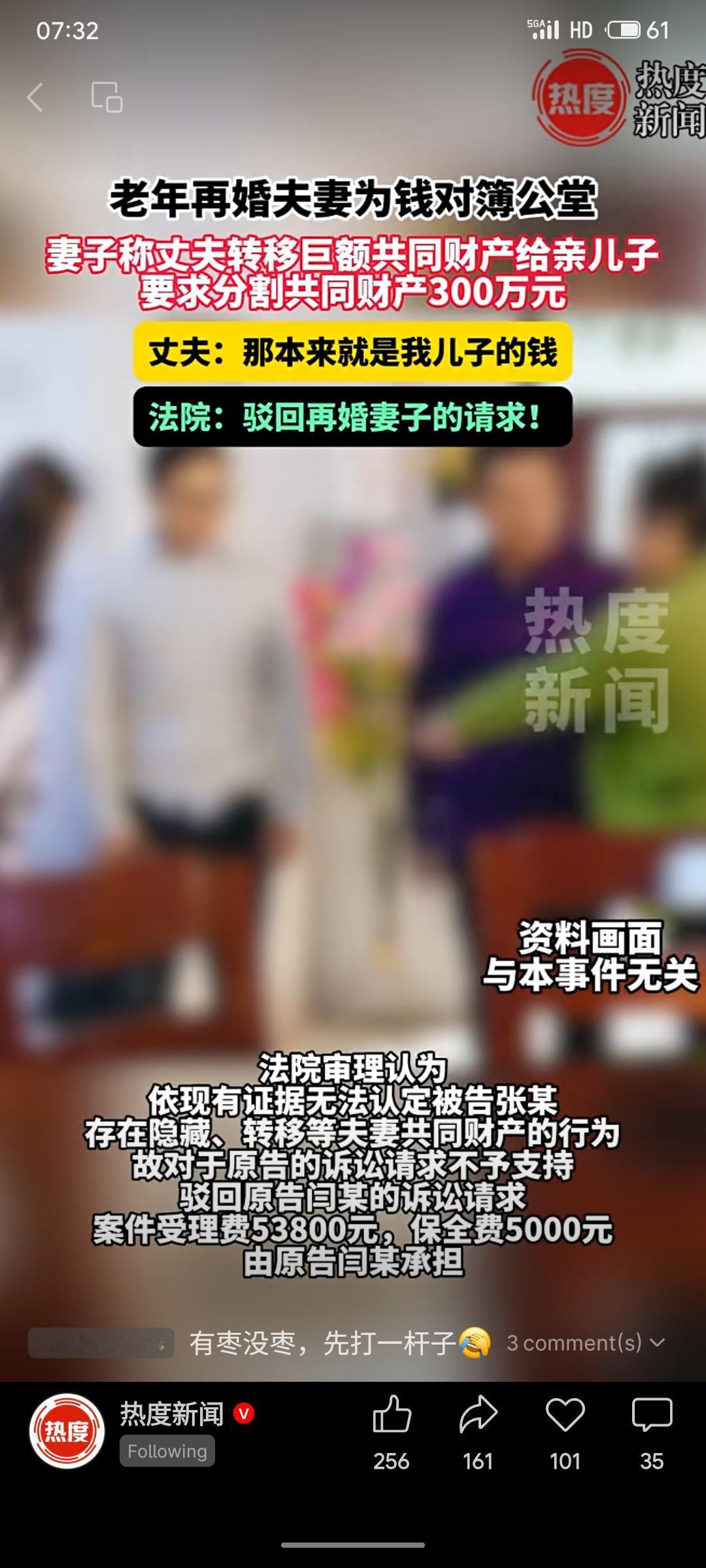 一对老年再婚夫妻因财产纠纷对簿公堂。妻子闫某起诉丈夫张某,称其将300万元夫妻共同财产转移给了亲生儿子,要求分割。丈夫张某辩称,该款项实为儿子经营饲料厂的业务流水,只是经自己账户周转,所有权属于儿子。法院审理后,认为原告证据不足,无法证明被告存在转移财产的行为,故驳回其全部诉讼请求,案件受理费等5万多元也由原告承担。 此案凸显了再婚家庭中财产界限清晰的重要性。法院的判决依据证据,保护了合法财产流转,也对缺乏事实依据的诉讼请求作出了否定。