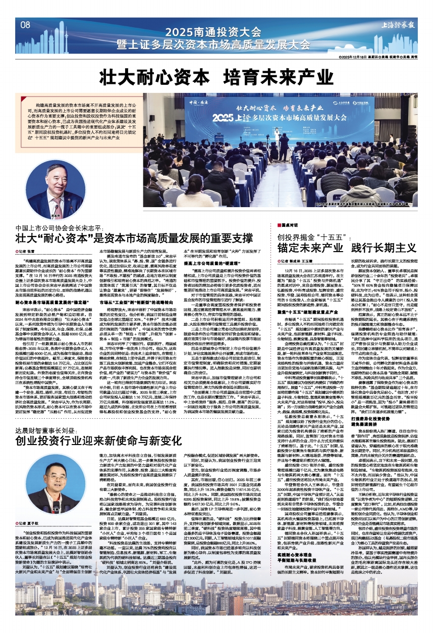 “创业投资和股权投资作为科技强国的重要资本和耐心资本,已成为我国推进现代化产业体系建设及发展新质生产力的一揽子工具箱中的重要组成部分。”12月16日,在2025上证多层次资本市场高质量发展大会上,达晨财智创始合伙人、董事长刘昼在以《“十五五”规划与创业投资新使命》为题的主旨演讲中表示。
