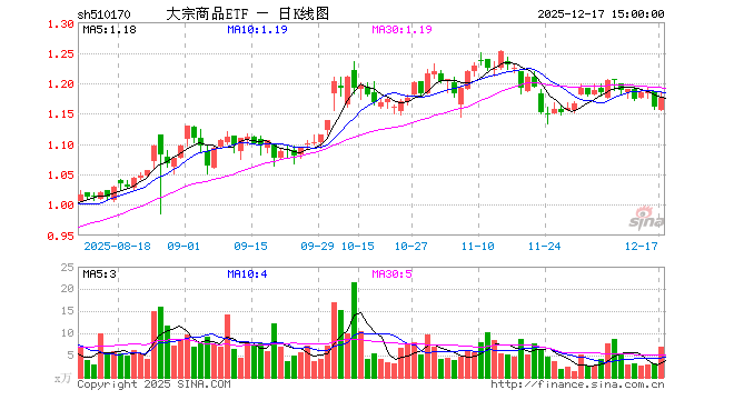 12月17日,大宗商品ETF(510170)涨1.38%,成交额819.25万元。当日份额增加200.00万份,最新份额为2.57亿份,近20个交易日份额增加1000.00万份。最新资产净值计算值为3.03亿元。