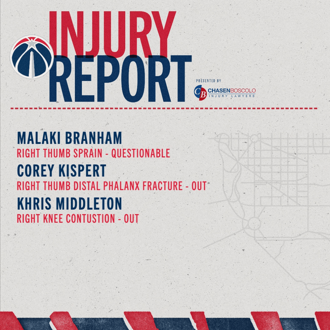 奇才更新伤病报告:布兰纳姆出战成疑,米德尔顿等缺席比赛