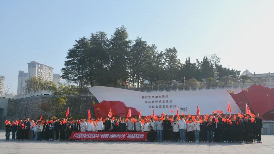 为深入开展爱国主义教育,传承红色革命精神,厚植家国情怀,让思政教育从书本走向现场,从理论走向实践,信阳市第三实验高级中学于2025年11月14日组织高一学子奔赴 “将军的摇篮”—— 河南省信阳市新县,开启了一场为期一天的红色研学实践。本次研学围绕“致敬英雄,争做新时代好少年”“缅怀革命先烈,传承红色基因”两大主题,用实地探访触摸历史温度,用情景体验感悟精神力量,让革命的精神薪火在青年心中点燃。