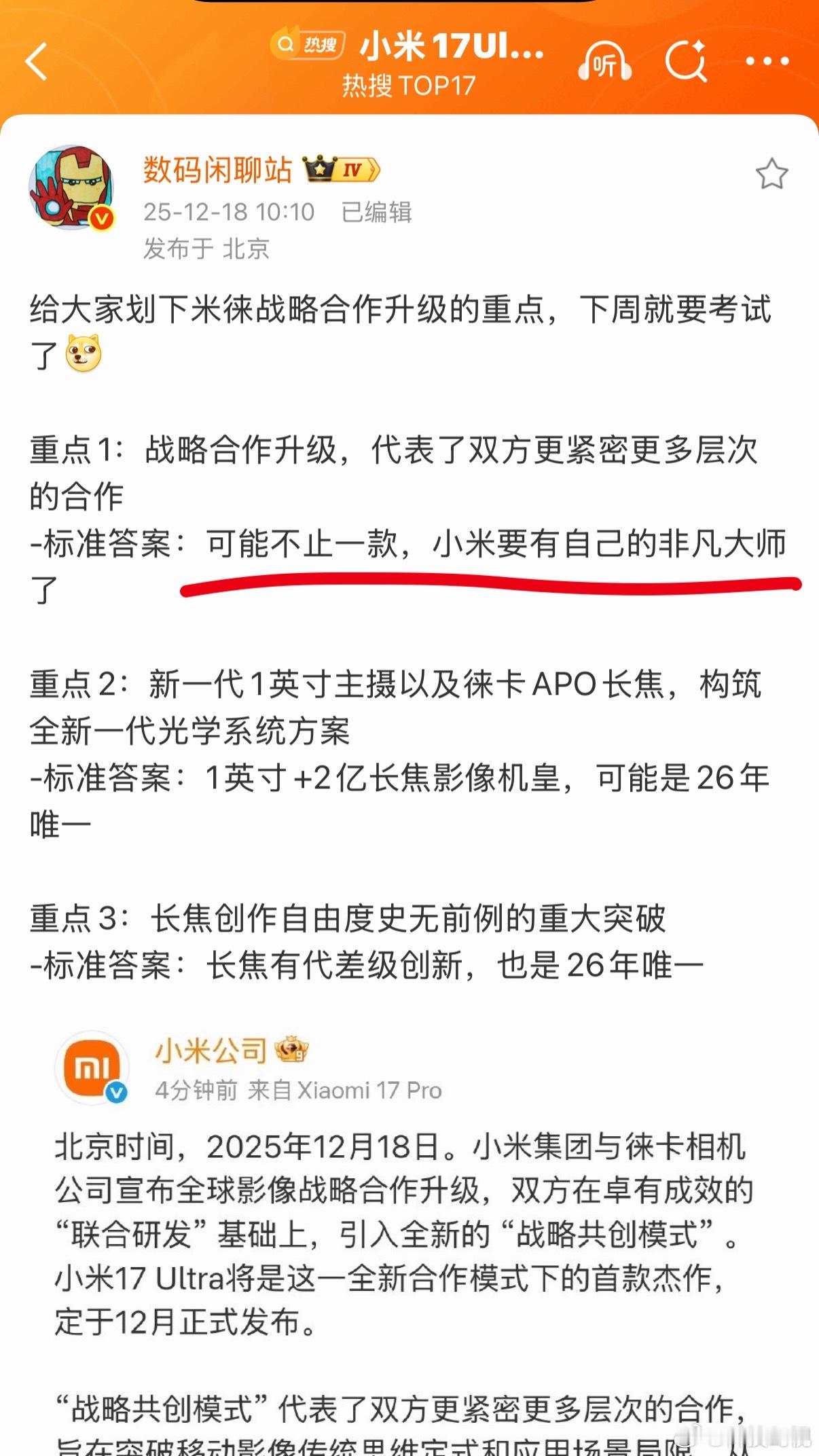 小米17Ultra下周发布小米和徕卡的战略合作再升级,17 Ultra可能不是终