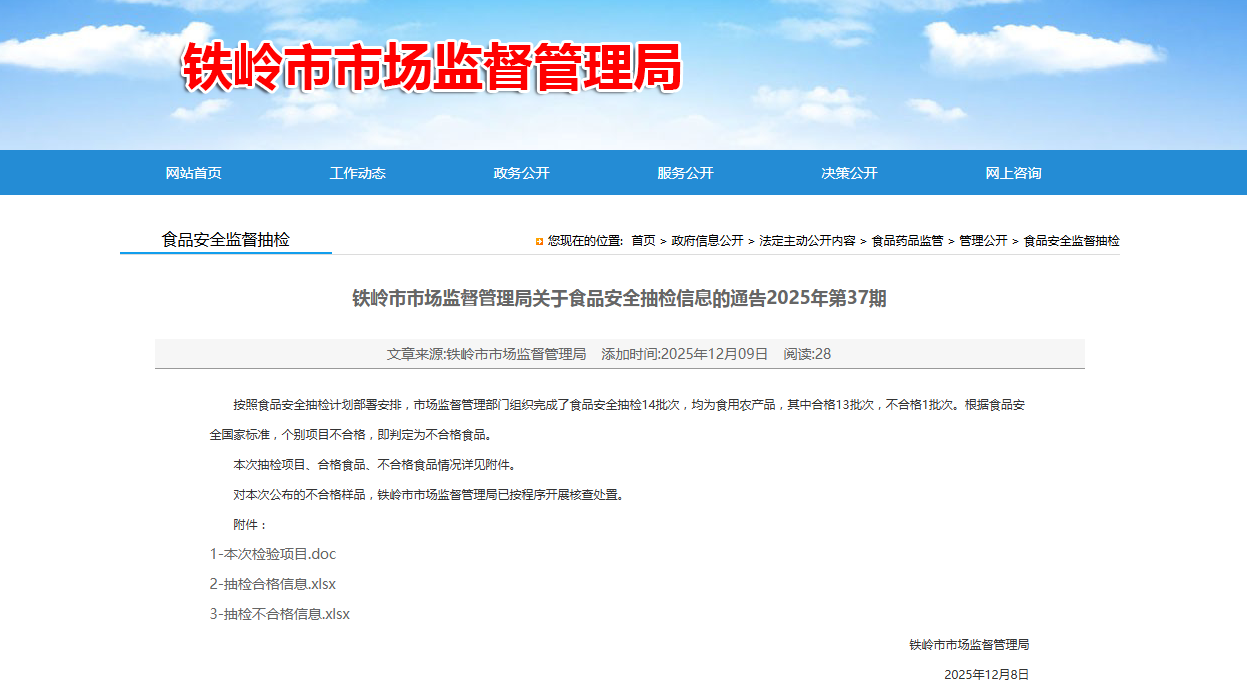 对本次公布的不合格样品,铁岭市市场监督管理局已按程序开展核查处置。