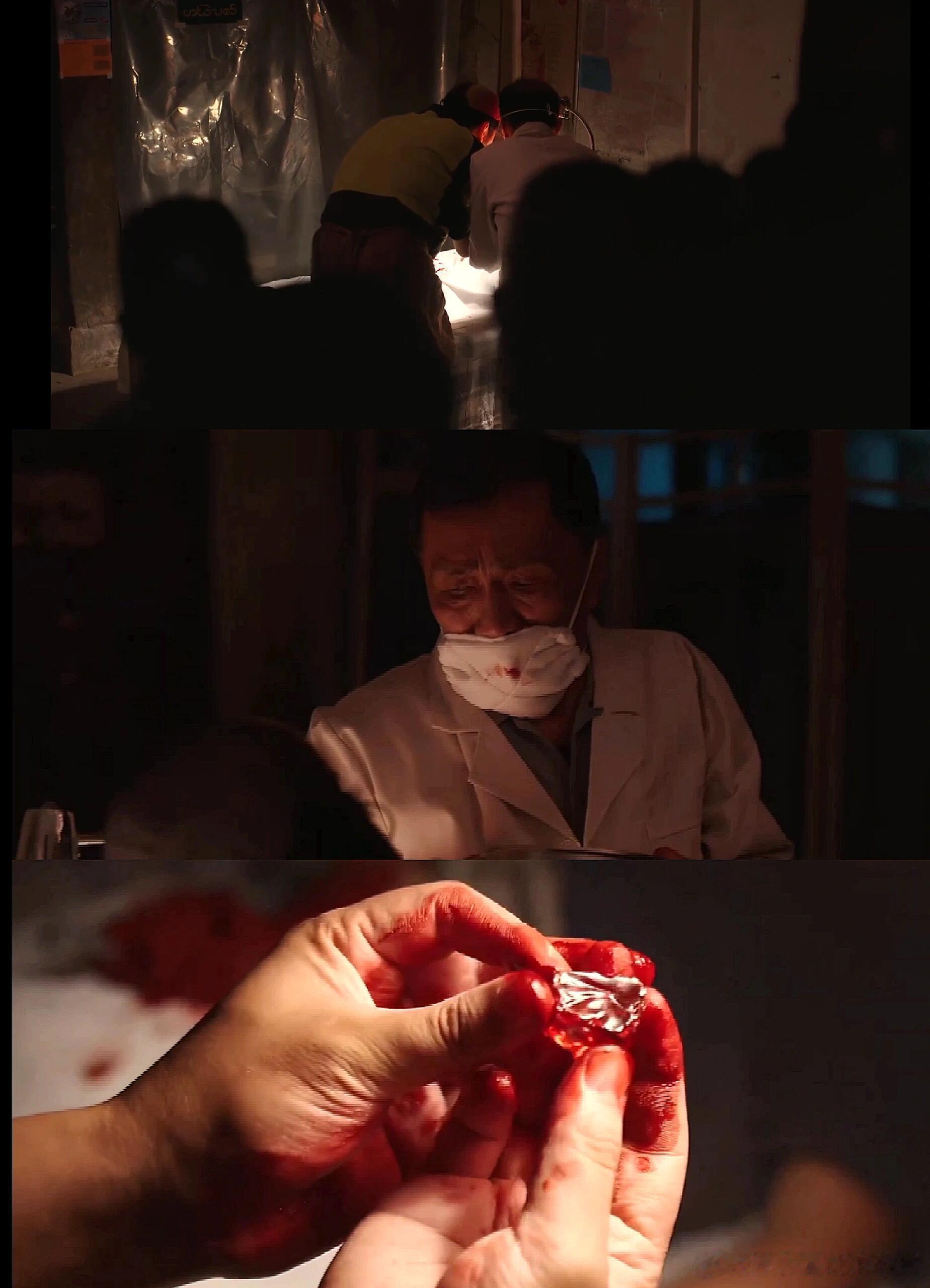 吃人的冰血窟送命的鸽血红算导的镜头语言真的太绝了,不用直白的血腥刻画,鸽血红名场面里的虚焦处理,直接让观众的注意力聚焦在石头上,