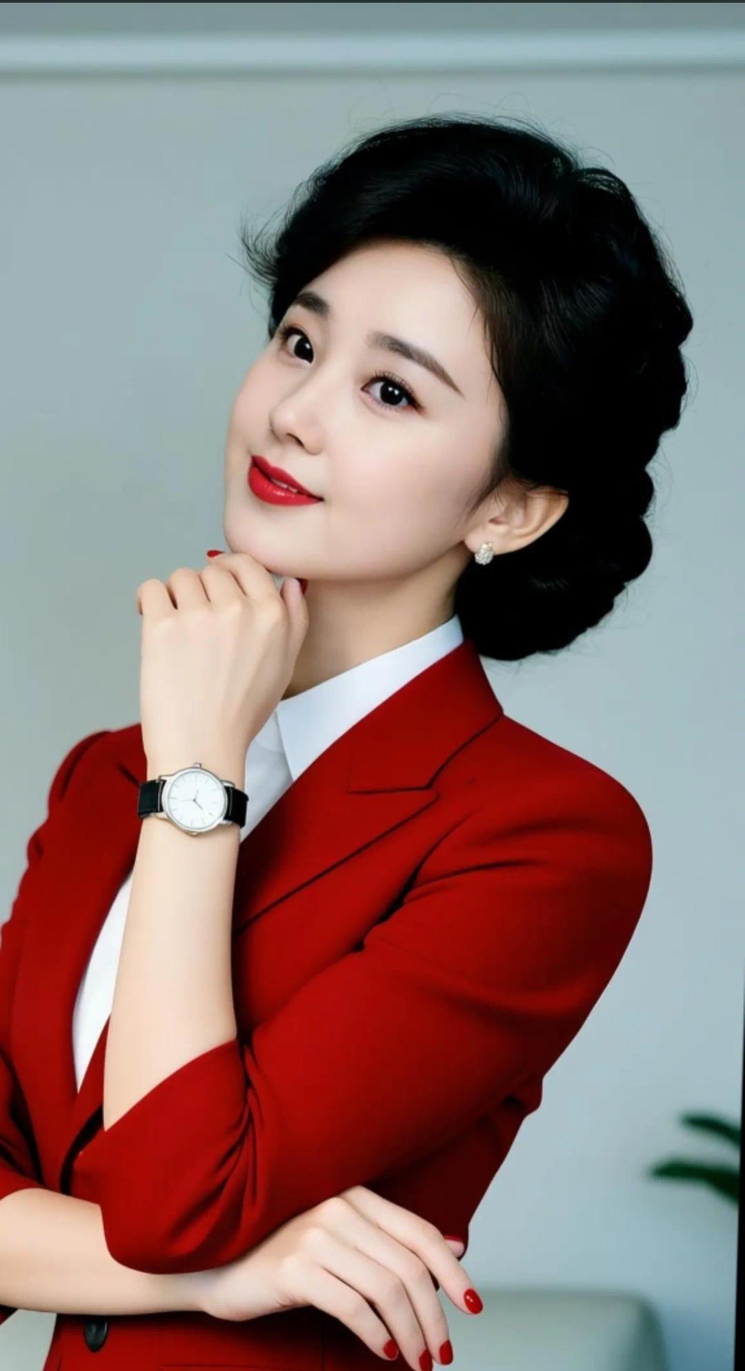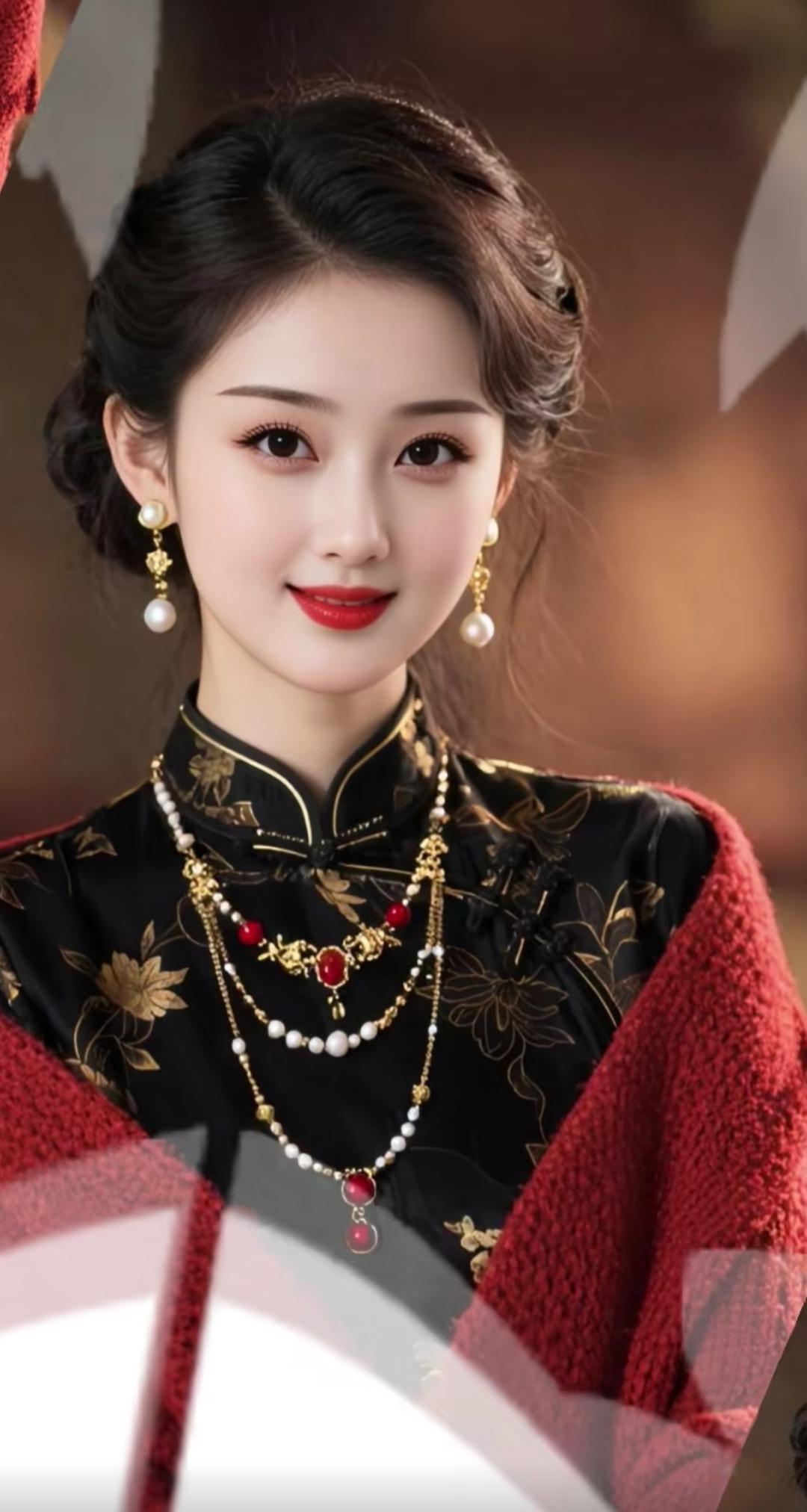 优雅黑发美人,红唇微笑,闪耀耳环,复古风穿搭。高雅气质美女 美女人像群