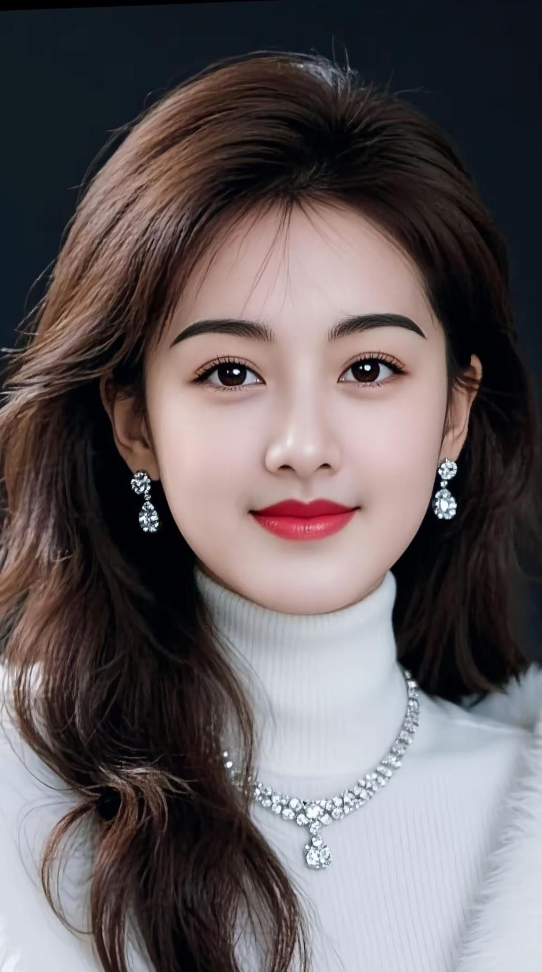 绿色毛衣搭配宝石项链,优雅气质扑面而来,不过最美的还是美女的精致面容!
