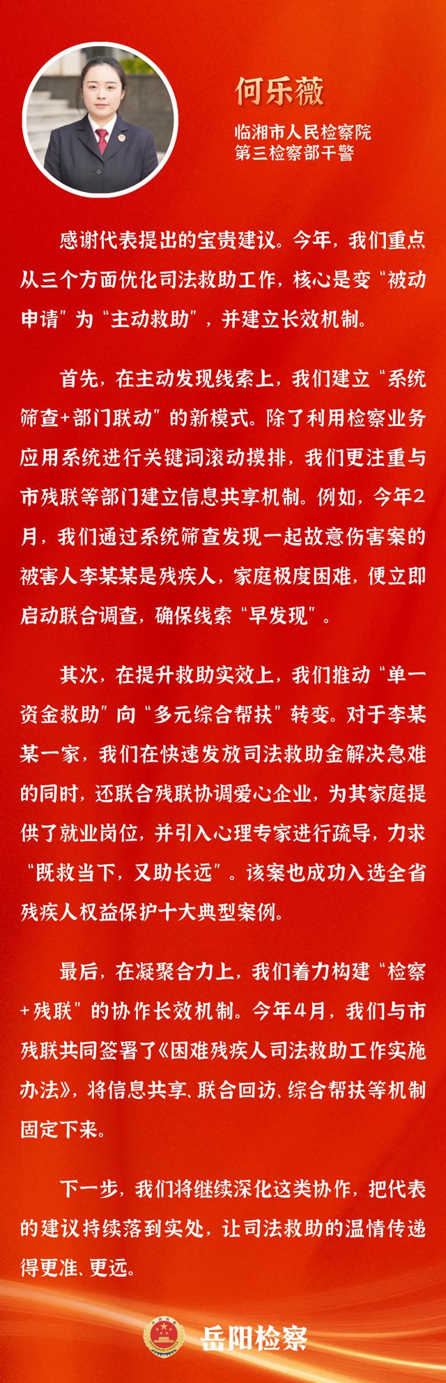 倾听,是履职的基础;回应,是庄严的承诺。每年两会,各位代表、委员聚焦发展大局、心系民生福祉,提出的每一份建议、每一份提案,都承载着人民的殷切期望,汇聚成推动法治进步与社会治理的智慧强音。这些真知灼见,犹如投入检察工作湖面的一颗颗石子,激荡起我们深思与奋进的涟漪。