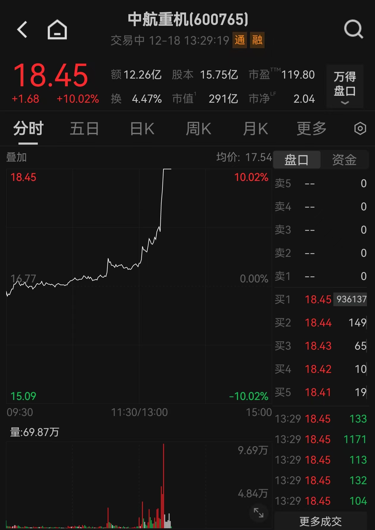 消息面上,12月15日,中航重机发布公告称,公司拟使用自有资金向控股子公司中航天地激光科技有限公司增资8550万元。