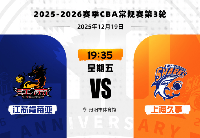 2025年12月19日,2025-2026赛季CBA联赛常规赛第3轮,上海久事客场挑战江苏肯帝亚。
