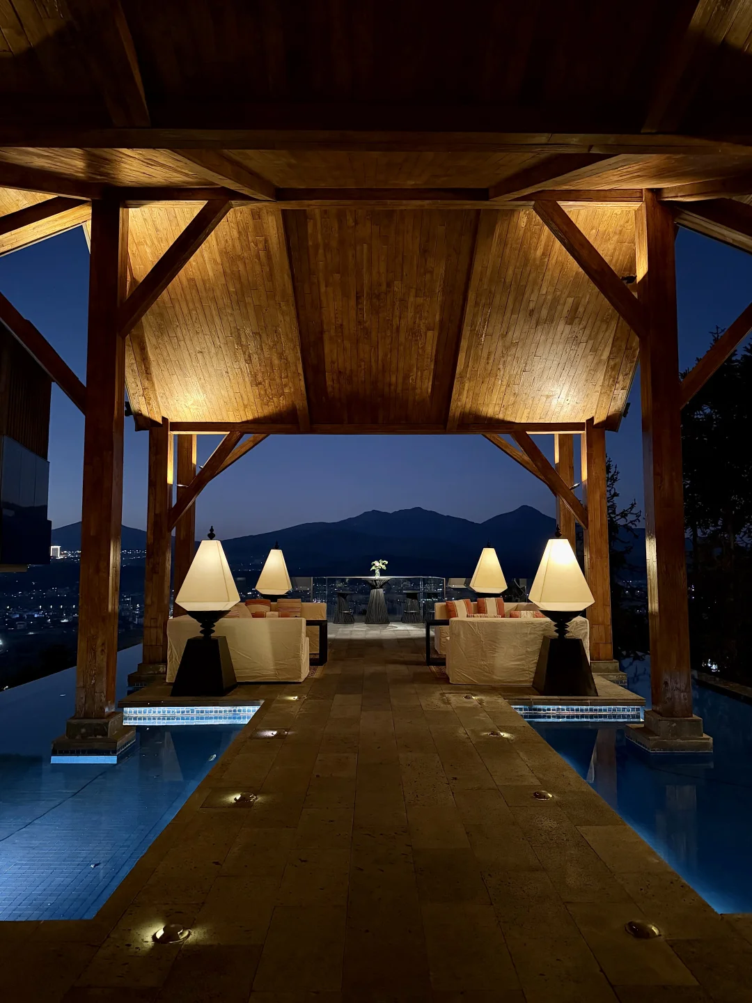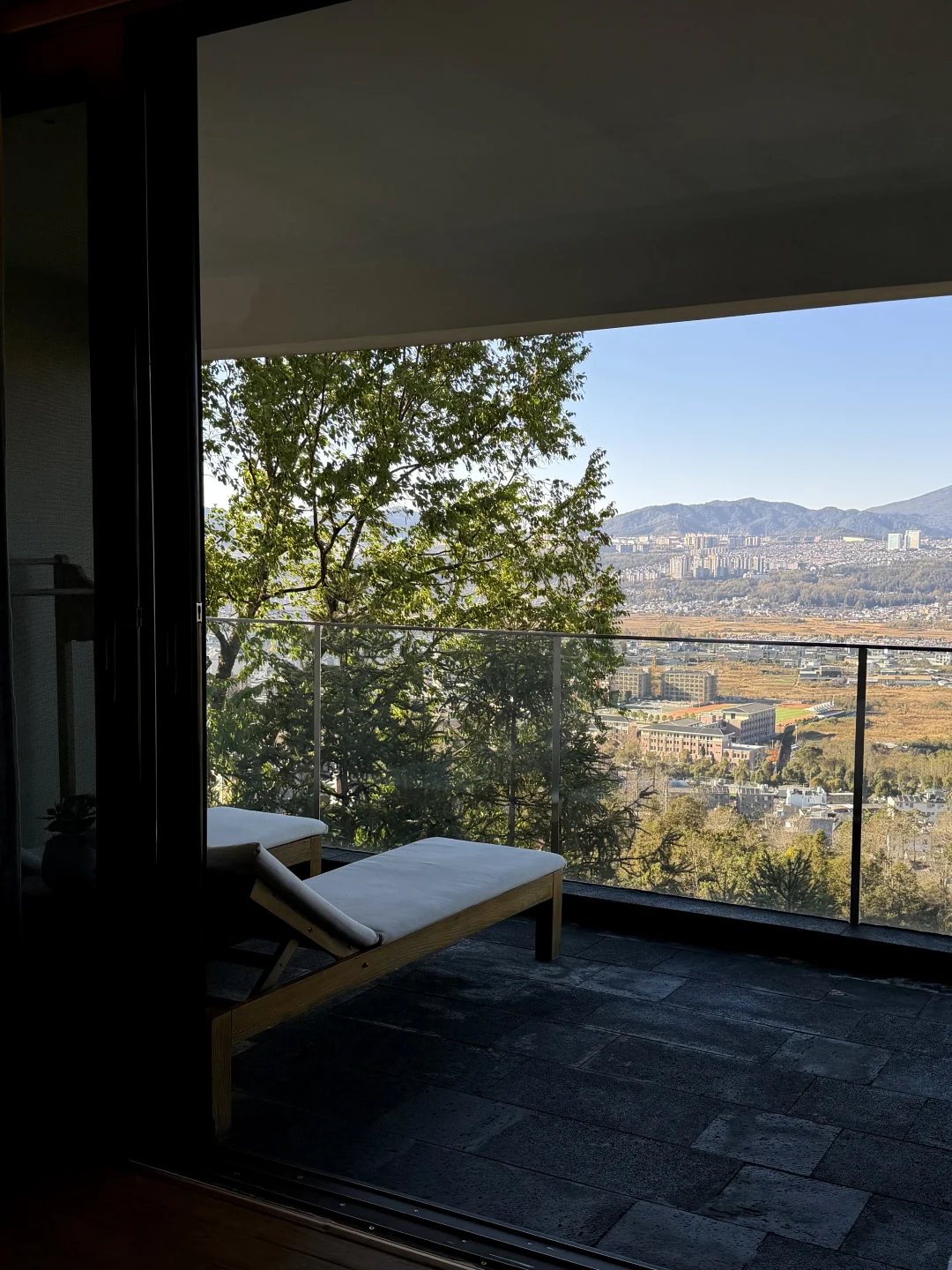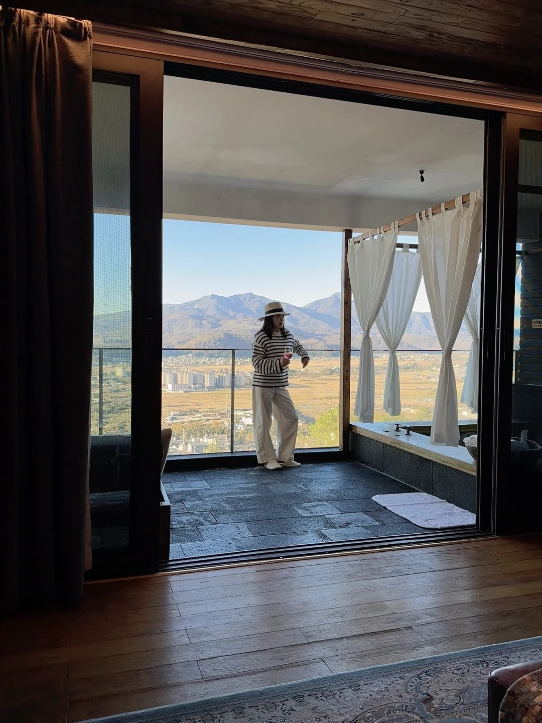 特地选了高黎贡半山上的温泉酒店,远离喧嚣,更有度假的感觉〰️打开房间的一瞬间就被窗外的风景吸引住,远处的火山群🌋,近处的欧式小镇🏡都尽收眼底,特别是傍晚时分,打开音响听着音乐,在房间边欣赏落日边泡天然私汤♨️,超chill!