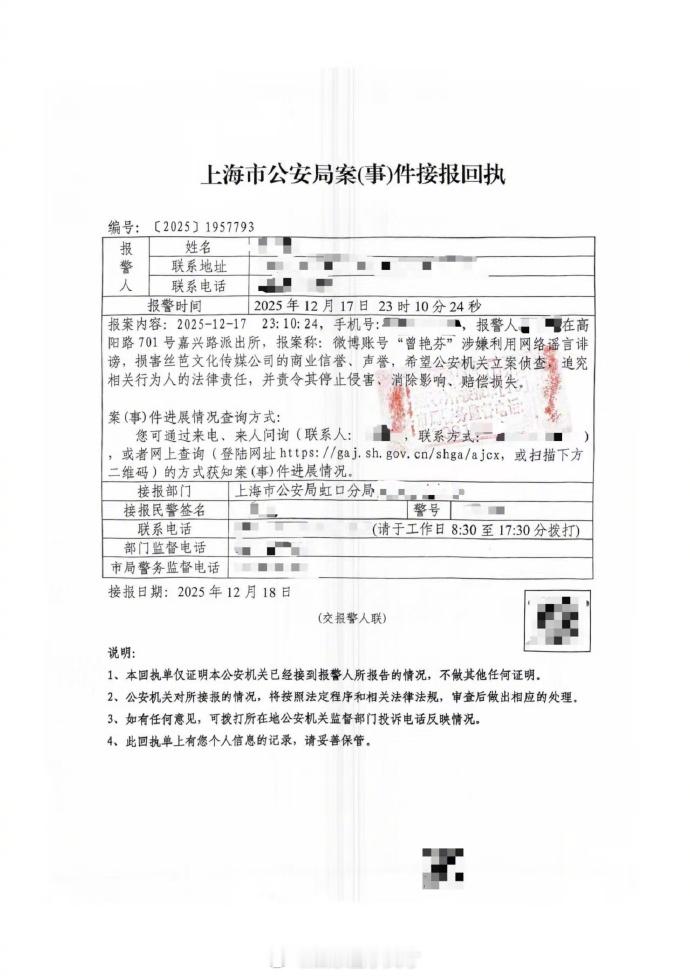 关于曾艳芬说的陪酒言论,丝芭传媒真的报警了。丝芭就曾艳芬陪酒言论报警