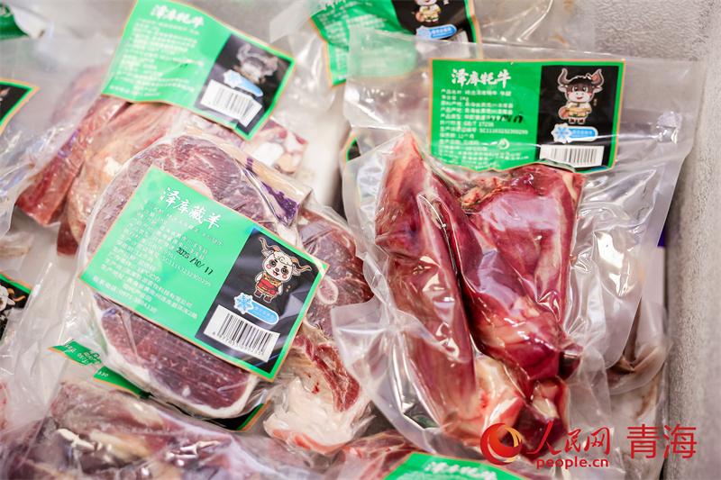 “泽库牦牛”“泽库藏羊”包装肉品。人民网马可欣摄