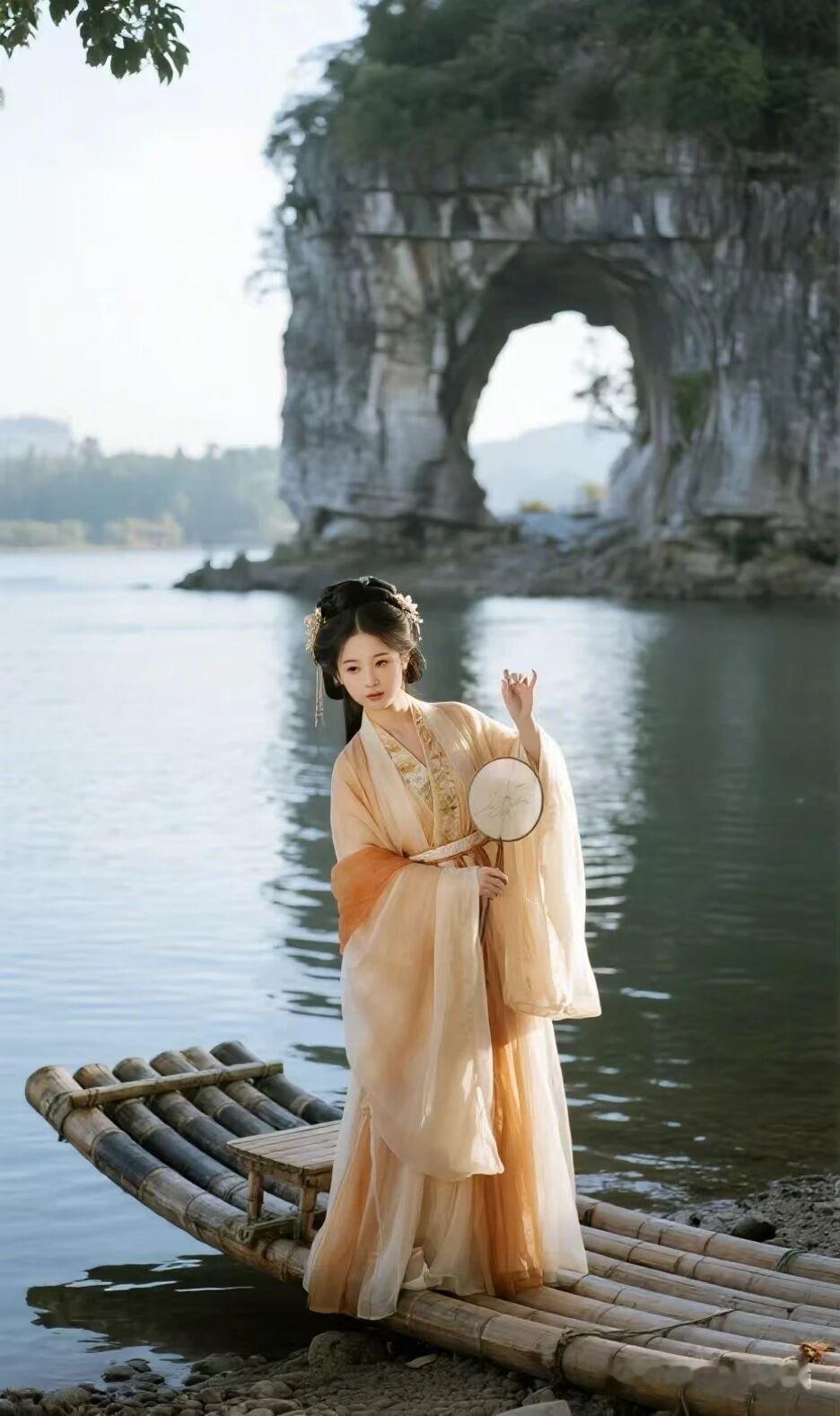山色入画来,水光潋滟间。女孩子穿汉服能有多好看