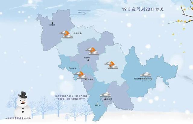 12月19日夜间到20日白天,通化、白山、延边州、长白山保护开发区有雨夹雪或小雪,部分地方有中到大雪。