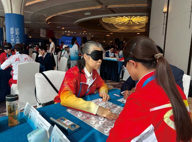 决赛中,所有选手均佩戴黑色眼罩,在完全看不见的情况下对弈。今年53岁的肖玮凭借刻在脑海中的清晰棋盘,与来自山东、青海、福建、湖北的5位强手展开数小时鏖战。她全程无需手摸棋局,全凭记忆运子如飞。“棋盘对我来说,就像印在心里一样。”最终,她以精准的算路和沉稳的决策锁定胜局。