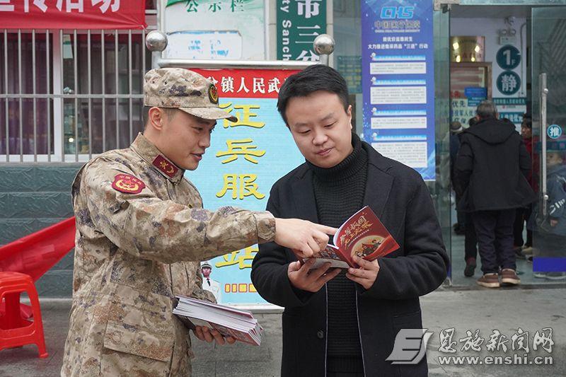 近日,恩施市三岔镇武装部工作人员在三岔口社区宣传征兵政策。