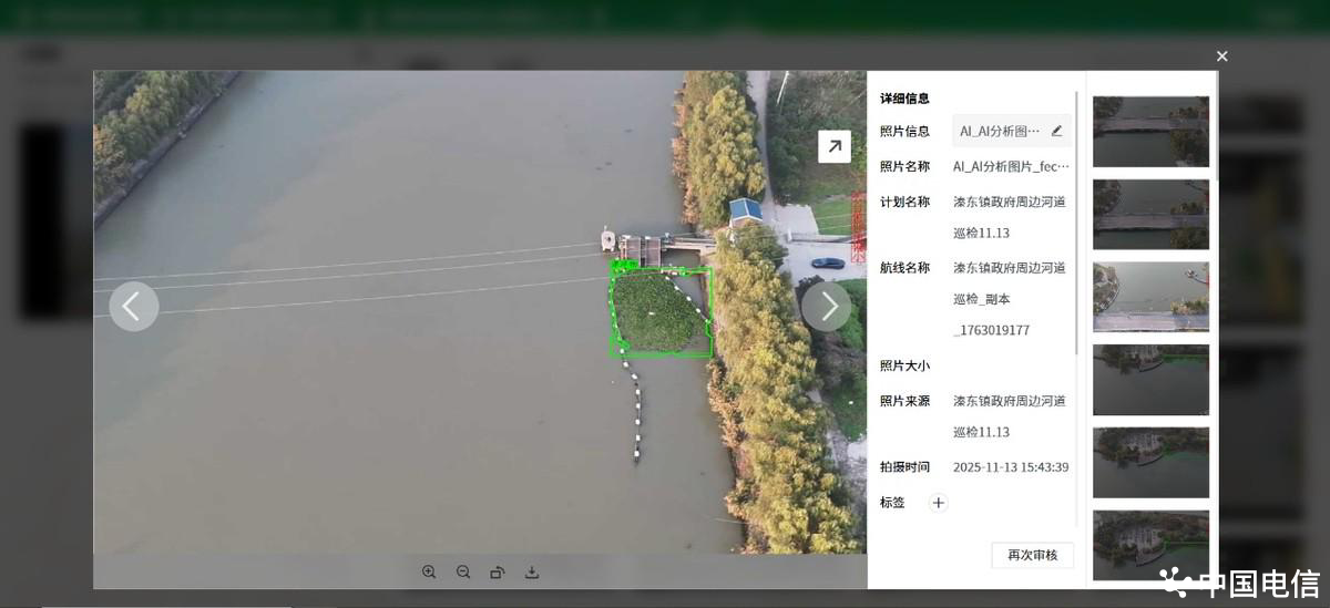 在河道巡护场景,围绕“河长制”工作要点与暑期防溺水等安全职责,星鸢标品可常态化巡查水域,精准识别水面漂浮物、违规采砂及危险水域野泳、垂钓行为,并结合实时喊话进行劝离与安全教育。