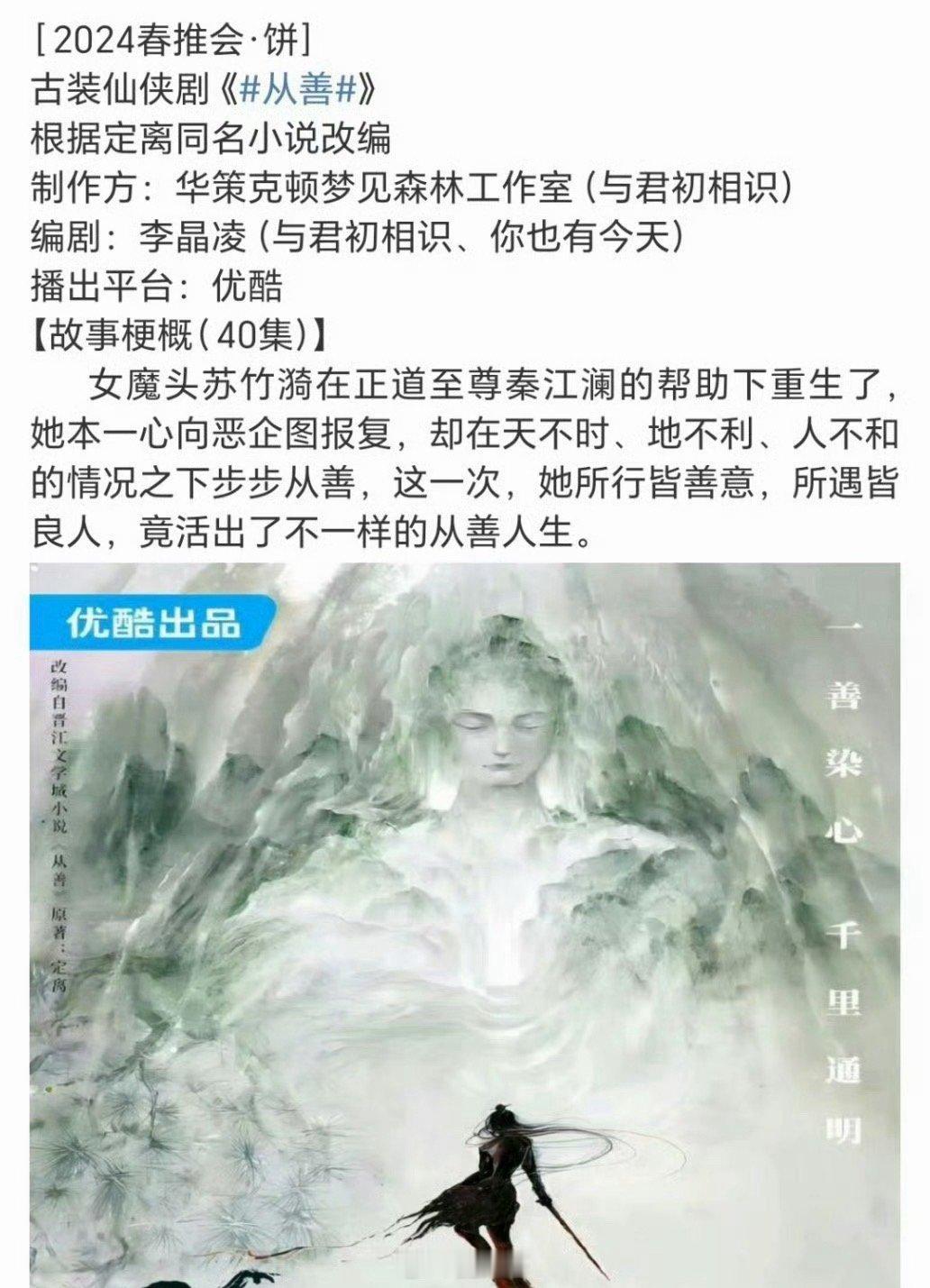 周也刘学义从善周也和刘学义居然要合作了,网传电视剧《从善》男女主定了周也和刘学义,周也的古装造型很是出圈,在剧中饰演女魔头苏竹漪,刘学义饰演男主秦江澜,人设和剧情很是带感,侯燥开机了啊~网传周也刘学义出演从善