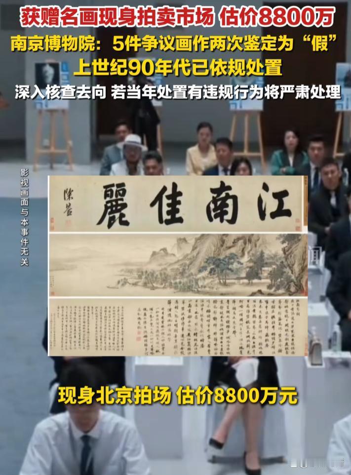 8800万天价名画《江南春》突然现身拍卖会,是真品还是赝品?背后又隐藏着哪些不为人知的秘密? 近年来,明代仇英的手卷《江南春》引发了艺术圈的广泛关注。这幅画作曾在2025年北京某拍卖公司的预展中亮相,估价高达8800万元,令人咋舌。然而,这幅画作却疑点重重。南京博物院多次鉴定均认为它是假画,但捐赠人的女儿却对鉴定的独立性和真实性提出了质疑。更令人惊讶的是,南博在处理这幅画作时,竟然存在程序上的漏洞,关键鉴定材料被打码处理,甚至疑似未经正式程序就私自处理了。此外,这幅画作还曾神秘地出现在南京一家古玩店中,这不禁让人对其流转途径产生了诸多猜测。目前,国家文物局已经介入调查,力求厘清事实真相,确保文物管理工作的规范性和透明度。 8800万名画现身拍卖会,背后疑点重重,真相究竟如何?让我们拭目以待国家文物局的调查结果。大家对此有何看法?欢迎在评论区留言讨论!