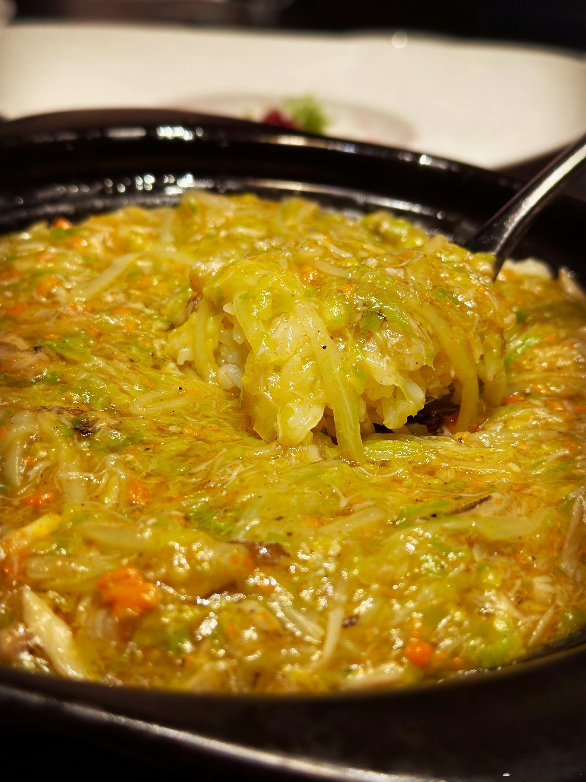 想早晨去登佘山。晚上住佘山世茂洲际。放下行李就直接来彩丰楼吃饭。一盅牛肉汤入喉,暖了。今日没吃午餐。傍晚到酒店就直奔彩丰楼了。每一道看着都想吃。也确实每一道都好吃且基本全部吃完了。羊羔冻配了红醋调味很合我意,这样吃起来就一点也不腻,吃了好几块。热上的银鳕鱼熏鱼美味;腌小红萝卜是必点保留节目;用鸡汤煲的牛肉汤有清香的草药味,浓郁滋补暖心,小小一盏正好;咖喱虾球是上海人喜欢的咖喱味道,虾肉弹牙饱满,配脆脆的黄油烤面包;蟹粉烂糊肉丝煲仔饭,非常鲜美,连锅巴都全部吃净。小食里的开口笑太好吃了。这一餐吃毕,明天可以徒步去佘山了。戎师傅又出了好多新菜,值得特意跑一趟。 上海·彩丰楼·中餐厅(佘山世茂洲际店)