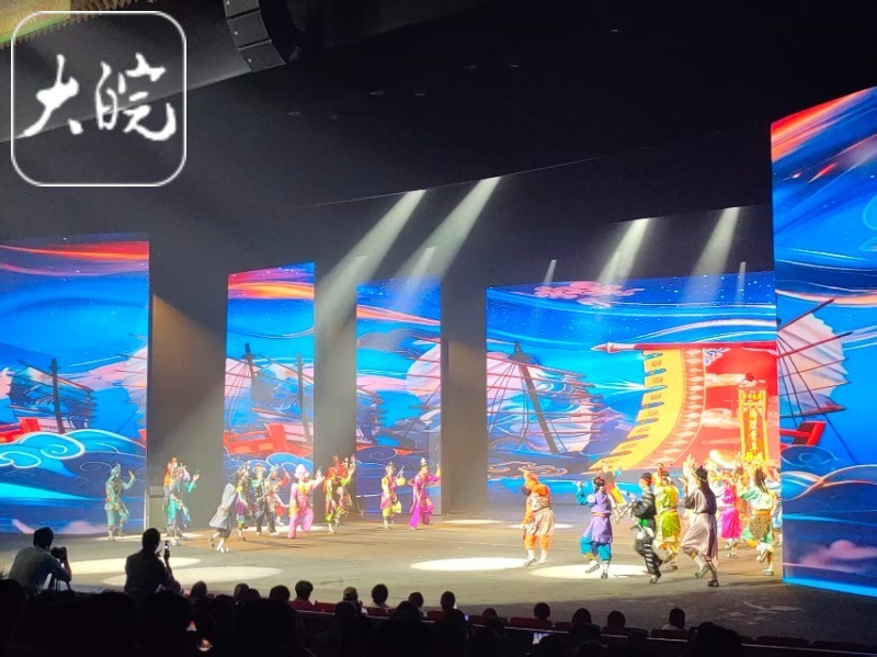 12月18日晚,在黄山市屯溪的“黄山徽秀演艺城”,举办了活动开幕式的非遗展演,内蒙古马头琴音乐,陕西横山腰鼓,广东普宁英歌,安徽徽剧、临泉杂技、徽州民歌、大别山民歌、巢湖民歌、蚌埠花鼓灯等先后展演,浙江长兴百叶龙与安徽无为鱼灯、汪满田鱼灯同台展演,充满各地民族文化与传统民俗风情的节目,精彩纷呈,能容纳1600名观众的演艺厅坐满了观众,全场掌声不断。