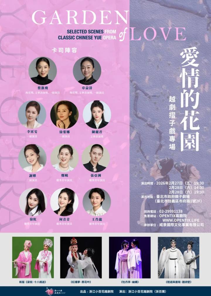 《爱情的花园》越剧折子戏专场将于2026年2月27日-28日,在台北市政府亲子剧场连演三场。