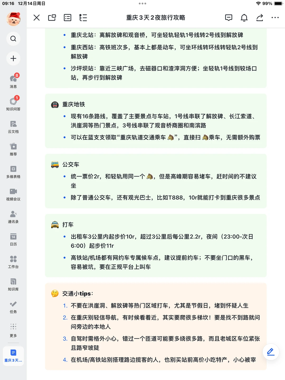 重庆3天2夜的行程路线、交通、住宿、景点攻略和避雷建议,她全帮忙规划好了~