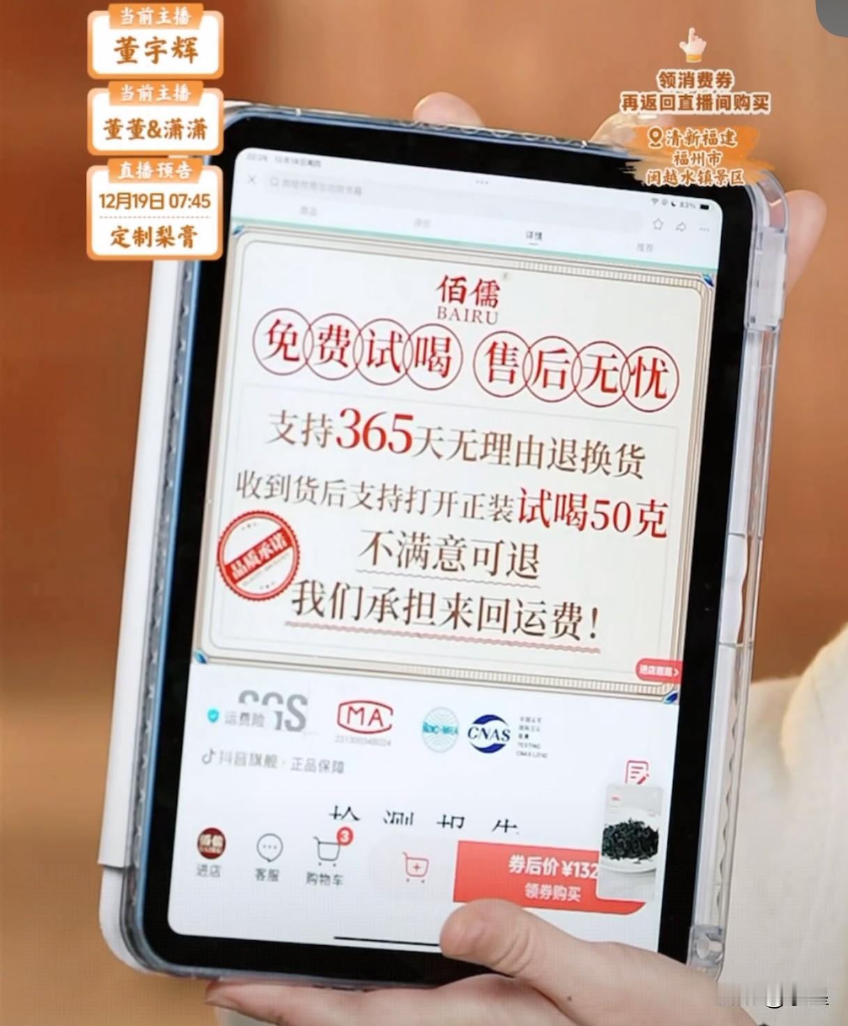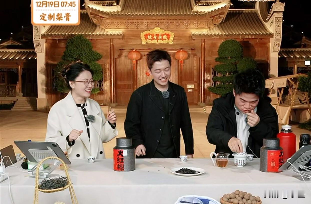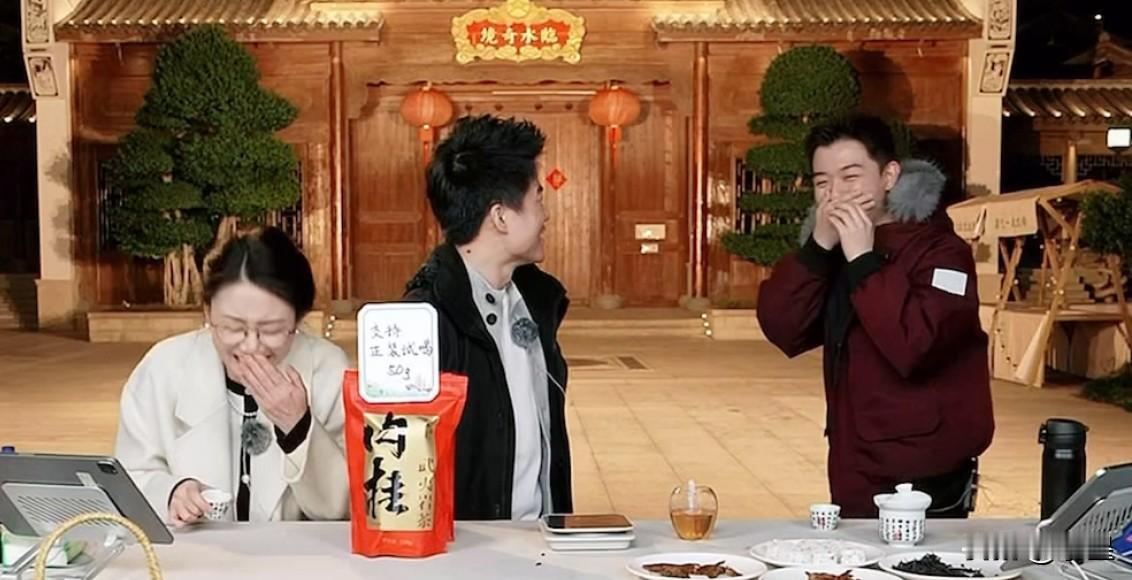 第一次见这么横的售后政策 365天无理由退换货,连运费都承担 今天董宇辉直播间的这款武夷岩茶 无疑成了主角 评论区一堆福建观众 指挥他们仨泡茶: 让用8.35克的茶叶泡 第一遍不用洗直接喝 出汤要快不能磨蹭。。。 三个人手忙脚乱的开始照办 他们是真听话,把秤找来了[捂脸] 可惜没法精确到小数点第二位[笑哭] 称重也还好,倒茶的时候 感觉董宇辉用了全身的力气[偷笑] 还把自己给烫了[笑哭] 他说福建的朋友嘴真硬 盖碗这么烫从来不说[笑哭] 更逗的是 助理小妹妹给他拿了条冻鱼 让他冰一冰手指[笑哭] 。。好无厘头的直播间啊 后来董宇辉嫌茶太浓 就兑自己保温杯里喝 结果烫到了[笑哭] 把董董急得 拿了瓶冰镇银耳汤 就往董宇辉嘴里灌(图7) 这仨直播也太逗了 笑得人肚子疼 那场面用兵荒马乱来形容都不过分[捂脸] 后来有观众说喝茶前要许愿 董宇辉说我还以为看到流星了呢 显然他不信 看来大脑袋还是聪明啊 不是啥话都听[笑哭][笑哭][笑哭][笑哭]