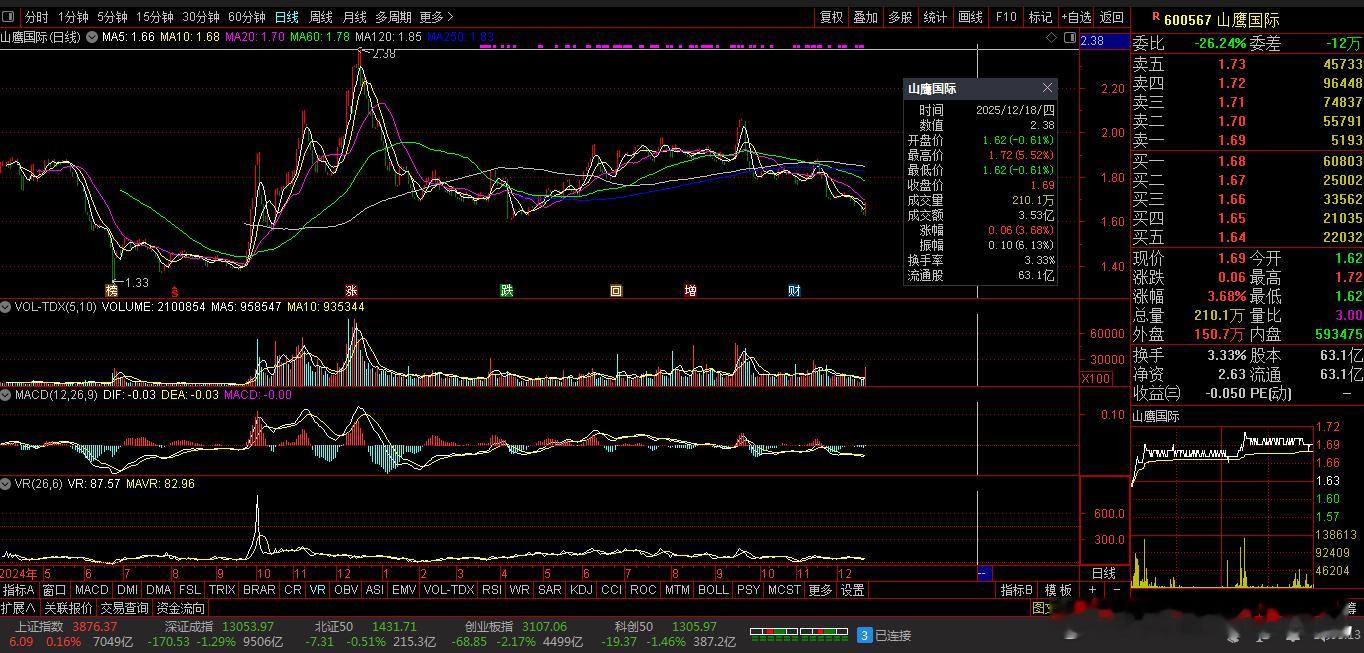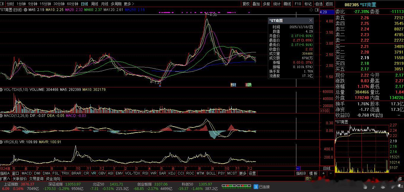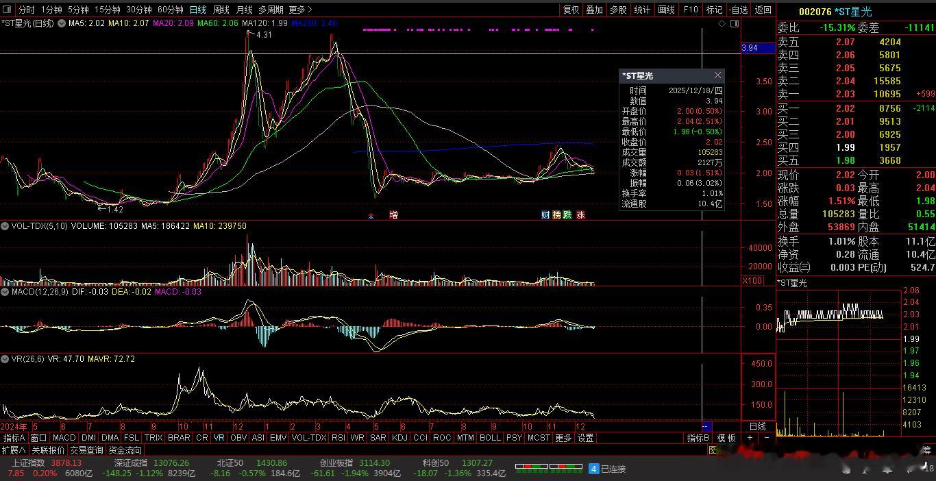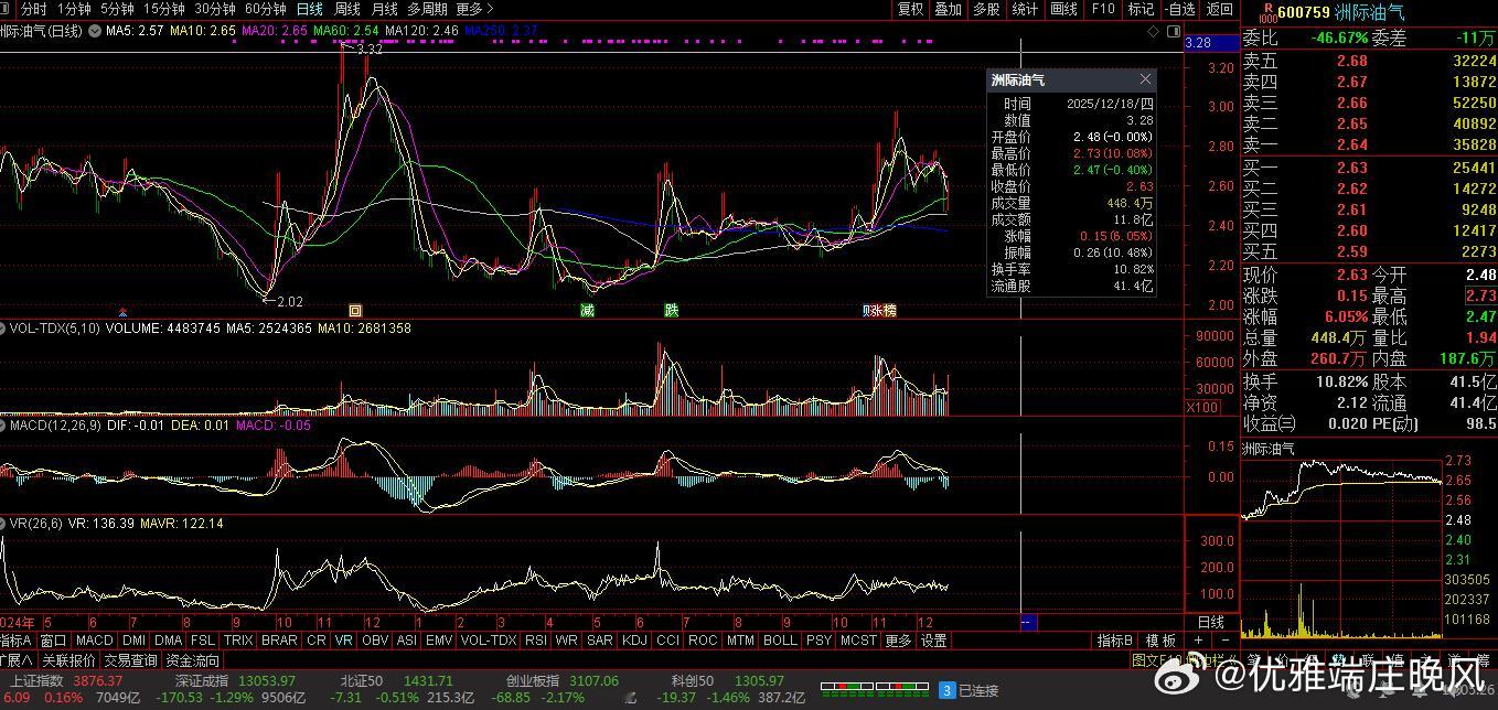 【财富晚茶】三元股市收评:沪指涨0.16%:油气强势上扬电网探底导语:作者系《网易号》优质财经领域创作者。曾经原创作者和知名网易号旅游领域创作者。大跨度行业等的写作,颇受网友喜爱。作品发表于2025.12.18.15:18优雅端庄晚风。一、*ST星光:八年箱底002076 *ST星光 盘中 01涨1、八年筑底:底部震荡今日视野:前期双顶,触底盘升。2025-12-18 截止15:00:收盘股价:2.03元,上涨 2.01%。成交总量:109136手。成交金额:2205万元。总换手率:1.05%。总市值达:20.43亿元,流通市值:20.43元。2、汽车照明:锂电设备主营业务:LED照明-紫外消杀-汽车照明-锂电池生产设备研产和销售。公司品牌:光科技应用-锂电池头部企业。3、营收良好:净利减亏业绩盈亏:2025-09-30 三季度报:公司营收:1.6865亿 同比增36.04%,实现净利润320.2526万 同比增256.29%。二、多空搏杀:沪红深绿1、追踪盘面:蛛丝马迹沪深场景:早盘:低开二涨,二跌一涨。午盘:二涨二跌,二涨二跌。尾盘:沪指:一涨二跌,次高红盘。沪指:二涨三跌,次低绿盘。看点之一:沪指盘中:窄幅震荡,瞬间上扬。看点之二:一只乌鸦:创指脆弱:跌幅超2%。看点之三:沪深北市:合计成交:16770亿元。场内个股:2844股飘红。2、板块涨跌:风口依然涨跌观察:板块见证:板块上涨:零售等。板块强势:银行、煤炭、保险、石油等。板块疲弱:券商、半导体等。概念活跃:AI医疗概念、商业航天、IP经济等。3、技术看盘:涨跌位置观K线提示:精彩多空博弈。12月19日:沪指突破阻力:03888点看涨,前程似锦;跌破支撑位:03856点看跌,日暮途穷。深指突破阻力:13205点看涨,鹏程万里;跌破支撑位:13053点看跌,不堪造就。三、三元板块:风口潜水1、追踪盘面:视角视野三元强势,沪深反弹。今日三元板块:70股上涨,涨幅5%以上:1股涨停板。37股下跌,跌幅5%以上:3股跌停板。涨幅0%:23股0停板。涨幅0.00%+上涨个股:23+70=93股票赚钱。沪深两市:合计成交16770亿元。总体归纳:三元股票:盘口强势。2、追踪盘面:主力进退换位思考:沪深走强,尾盘震荡。沪指距9:31-15:00:前1小时放量盘升,中2小时略量盘跌,后1小时略量盘跌。深指距9:31-15:00:前1小时放量盘升,中2小时略量盘跌,后1小时略量盘跌。沪深两市:合计成交:16770亿元。四、透析个股:聚焦涨跌1、涨幅榜眼:处排查摸主旋律:涨幅榜之中:寻找启动600759 洲际油气 600567 山鹰国际 002305 *ST南置 涨幅榜-1:600759 洲际油气主营业务:石油勘探-新能源-股权投资等研产和销售。公司品牌:国际大中型独立能源头部企业。涨幅榜-2:600567 山鹰国际主营业务:箱板纸及纸制品包装-国内外回收纤维贸易等研产和销售。公司品牌:全球绿色包装一体化解决方案服务商。涨幅榜-3:002305 *ST南置主营业务:商业地产等研产和销售。公司品牌:国内领先城市运营服务商和头部企业。2、跌幅榜眼:处排查摸主旋律:跌幅榜之中:寻找金子300344 *ST立方 002231 *ST奥维 000793 ST华闻跌幅榜-1:300344 *ST立方主营业务:智能软硬件-数字化智能-数字智能服务等研产和销售。公司品牌:新型数字基础建设的数字科技云服务商。跌幅榜-2:002231 *ST奥维主营业务:军队电子信息化-音视频指挥系统-网络通信等。公司品牌:国内移动通信运营商无线网络覆盖设备供服商。跌幅榜-3:000793 ST华闻主营业务:文旅业务-传媒景区开发-游戏运营-车联网服务等研产和销售。公司品牌:科技特色文旅头部企业。3、潜力榜眼:处排查摸主旋律:潜力榜之中:寻找估值002496 *ST辉丰 300301 *ST长方 000669 ST金鸿潜力榜-1:002496 *ST辉丰主营业务:生物农资-农资电商-石化仓储供应链-项目投资。公司品牌:中国领先亚临界小分子高温裂解工艺高科技专利产品和头部企业。潜力榜-2:300301 *ST长方主营业务:LED照明光源器件。公司品牌:LED照明光源器件头部企业。潜力榜-3:000669 ST金鸿主营业务:天然气。公司品牌:国内最具实力的综合性清洁能源服务商。五、本创作者:优质网易投资投机迷茫之中:给予尽可能有帮助:资本市场风险自负。(优雅端庄晚风《网易号》优质财经领域创作者和原创作者; 违者必究)