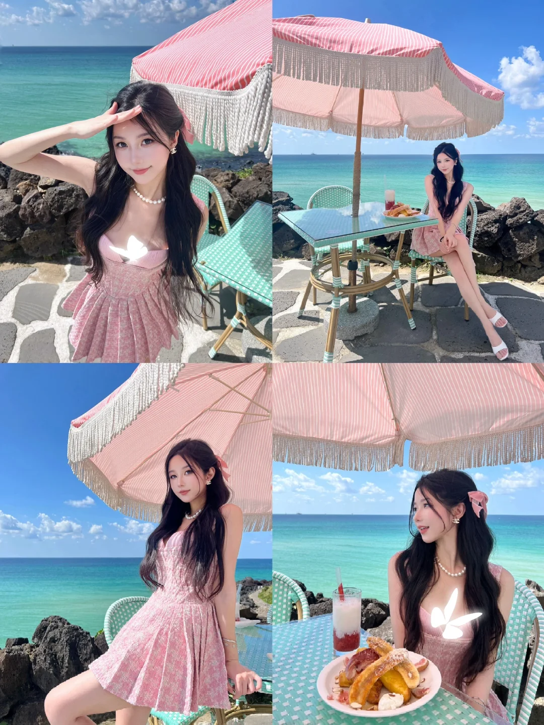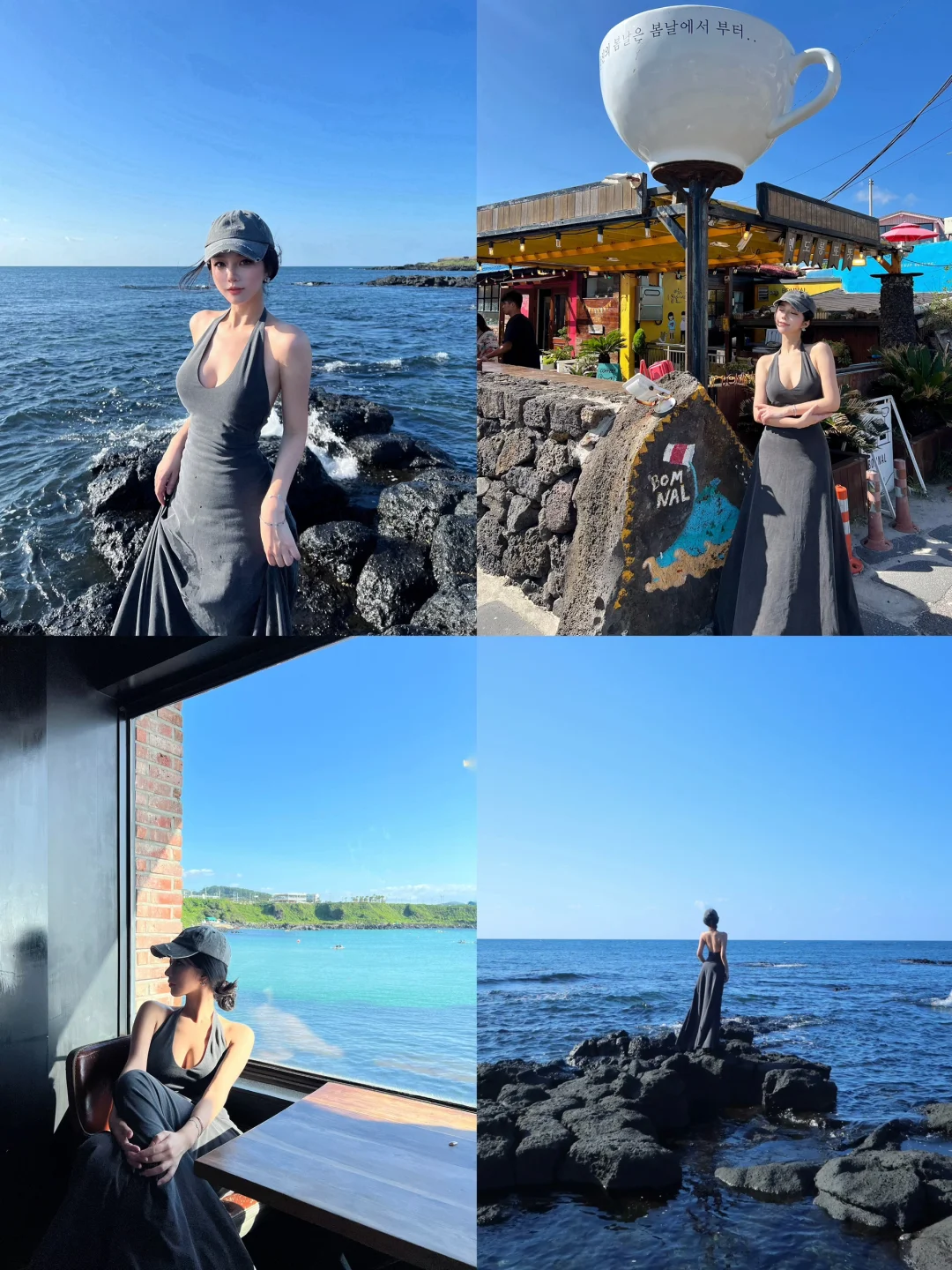 应粉丝宝宝们要求专门出一篇济州岛旅游的穿搭合集啦 为了每个景点都有蕞适合的衣服 照片能尽量呈现蕞好的效果 在有限的3天里尽可能多打卡几个地方写进攻略里 每天换5套衣服哈哈 所以从早到晚除了踩景点拍照就是在车上换衣服 真·特种兵了 虽然很累但回头看看美美的照片真的觉得超级值得! 人这一生如果能把美好的回忆都用文字和图片记录下来 老了以后做成一本书 会成我蕞宝贵蕞有意义的东西 回归正题! 👗穿搭: 我的穿搭思路很简单哈哈 就是同色系同风格 P2 裙子:showroomplus(字数限制以下简称SRP) 他家长裙都很好看,度假拍照很出片!之前去云南也很多都是他家衣服 鞋:Miumiu靴子 这双棕色靴子真的很百搭 帽:MXS潮帽店 P3 裙子:SRP 鞋:Prada厚底鞋 他家长裙对小个子不太友好,基本都是拖地的,所以我会搭配厚底鞋。但不得不说拖地的拍照才好看! 帽:MISBHV P4 裙子:SRP 鞋:Celine厚底小白鞋 蝴蝶结:Peach tea P5 上衣:好多年前买的了不记得了 裙子:SRP 鞋:Alexander Wang牛仔高跟靴 帽:Aolicat奥利猫 这个帽子超大,很显脸小,但同时显得头大… P6 上衣:这是件泳衣,也好早买的了,🍑搜牛仔泳衣会出来一大堆 裙子:SRP 帽:Aolicat奥利猫 她家鸭舌帽版型不错,好几个朋友问我要链接了 P7 上衣:Nana Jacqueline(以下简称NJ) 她家衣服都很好看,价格偏贵 裤子:NJ 鞋: CultGaia 这双非常适合度假,圆形透明鞋跟很特别,透明鞋背也显腿长! P8 裙子:NJ 鞋:By Far 这双我也穿了很多年了,跟又高显腿长又好走,还特别百搭,度假必备 P9 裙子:NJ 鞋:By Far P10 裙子:NJ 鞋:Miumiu 头巾:NJ P11 上衣:🍑搜牛仔抹胸会出来一大堆 裙子:Blumarine P12&13 不知道啥牌子的,很多店都有,可以直接🍑按图搜索 P14 Kendall同款泳衣,很多店都有,我在Sunshine Lolita买的 P15 Sunshine Lolita P16 KKX少女诗篇 - 特种兵4天3晚旅游路线在P17 详细旅游攻略和景点介绍在合集里