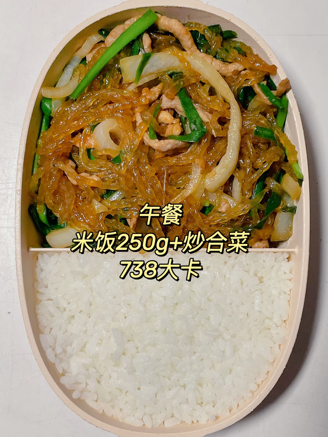 午 米饭+炒合菜(韭菜洋葱粉丝肉丝)