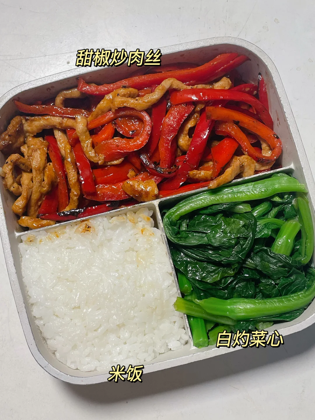 📍米饭+甜椒炒肉丝+白灼菜心