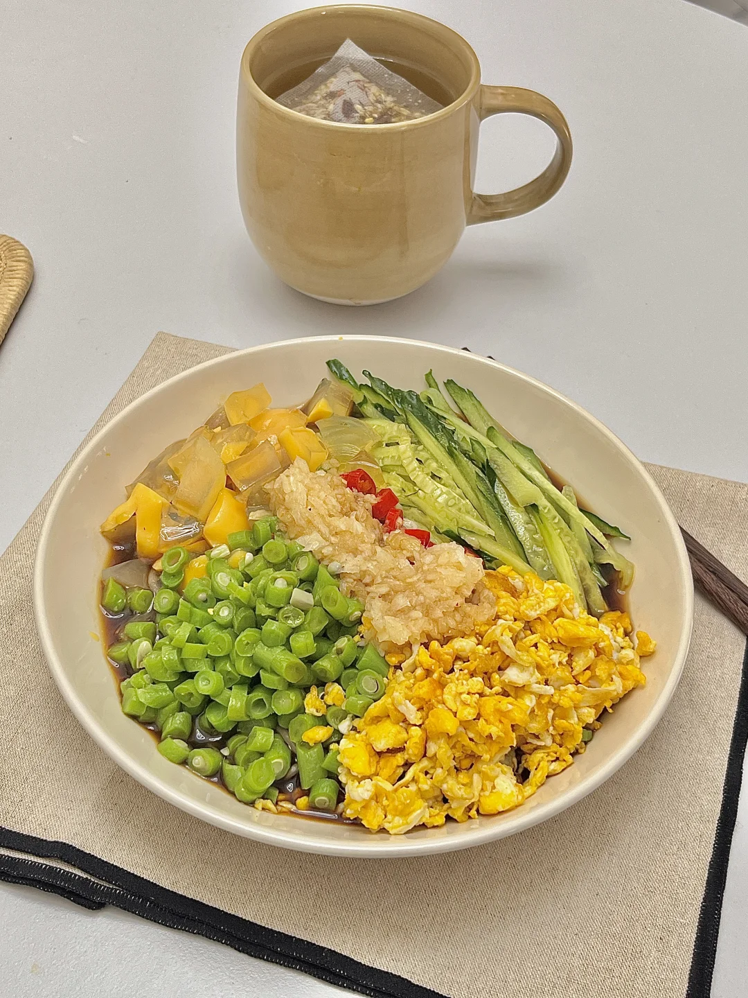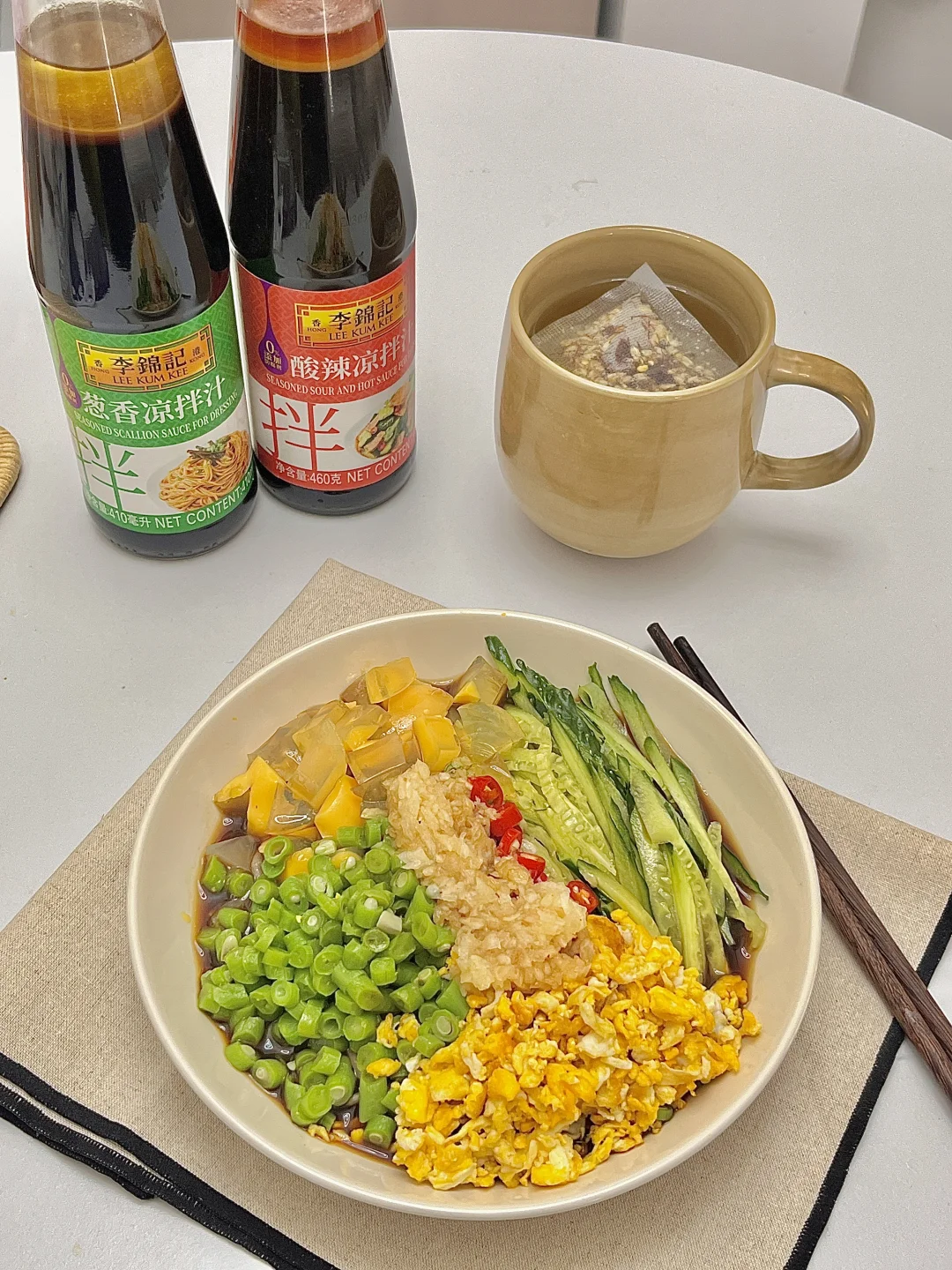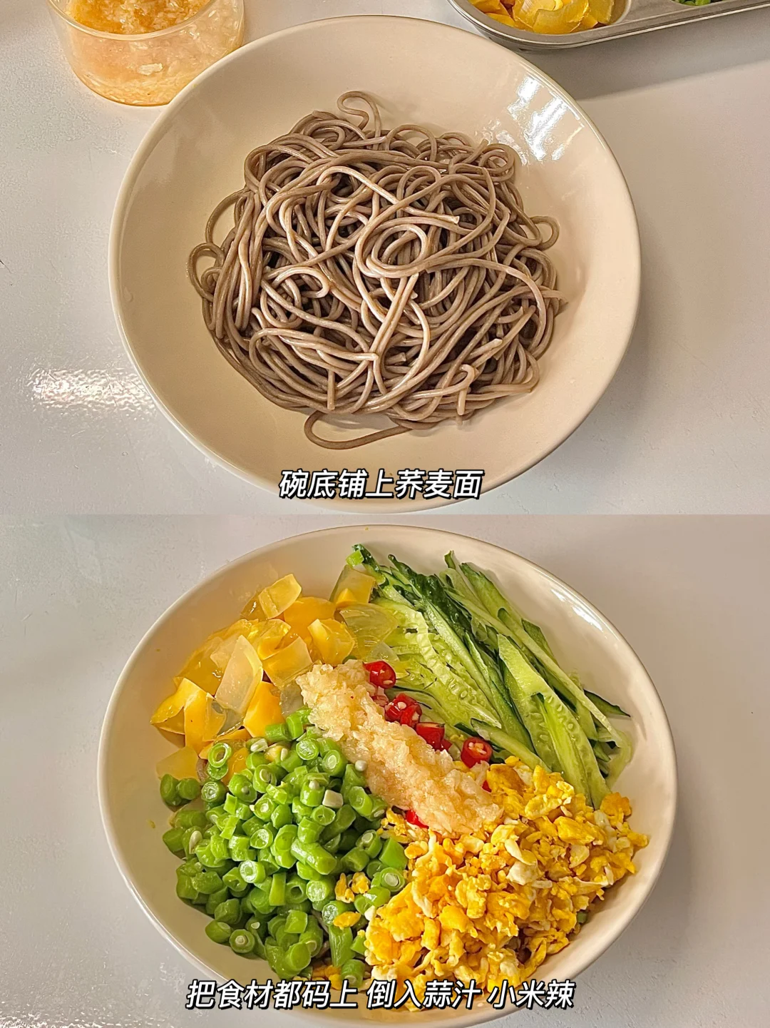 做菜我是认真的 吃腻了水煮菜一定要试试这个凉拌三花面,酸辣爽口,低卡饱腹,太适合体重管理期吃了! 食材🥣:荞麦面 豆角 黄瓜 变蛋 鸡蛋 酸辣凉拌汁 蒜汁 .做法再图上🥣酸爽开胃 快去试试吧~ .懒人公式🥣 备菜+酸辣凉拌汁拌一拌 ▪免开火!浇汁/拌面 3 分钟开吃 ▪酸辣度拿捏得刚刚好,爽口又过瘾🥣 ▪配料表干净,放心嗦无负担 平时吃不了辣的宝可以选葱香凉拌汁,这个料汁也巨香巨浓郁,放纵时刻来个葱香拌面/清口豆腐感觉也超赞的!