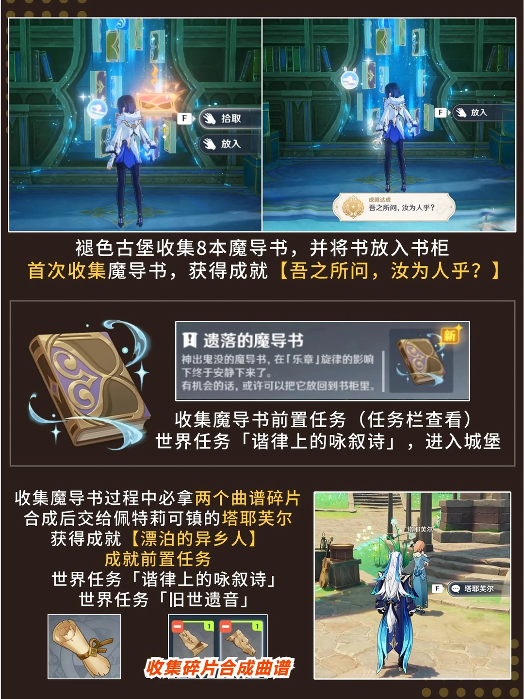 褪色古堡魔导书攻略!3成就与8本书&书柜[飞吻R] 三成就包括 | 「漂泊的异乡人」 | 为书所爱的人 | 吾之所问,汝为人乎? 共可获得3个珍贵4个精致2个奇馈宝箱、3成就、2曲谱残页、1玉帛、1双手剑胚 4.6任务与成就持续更新中...