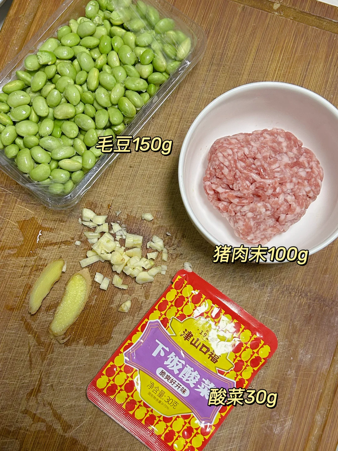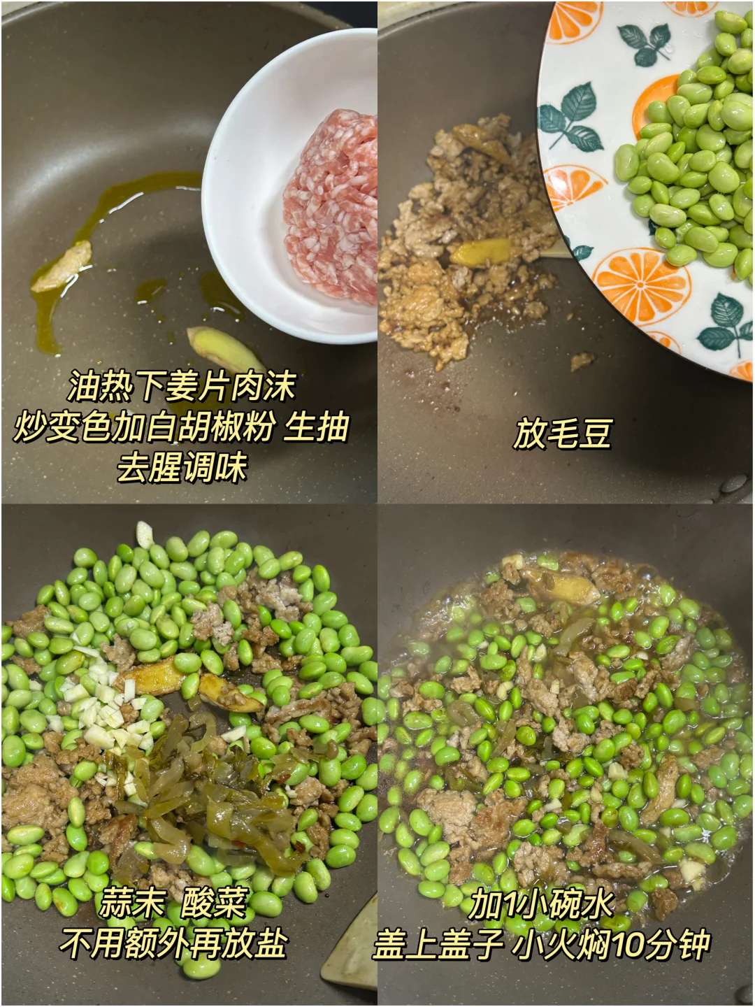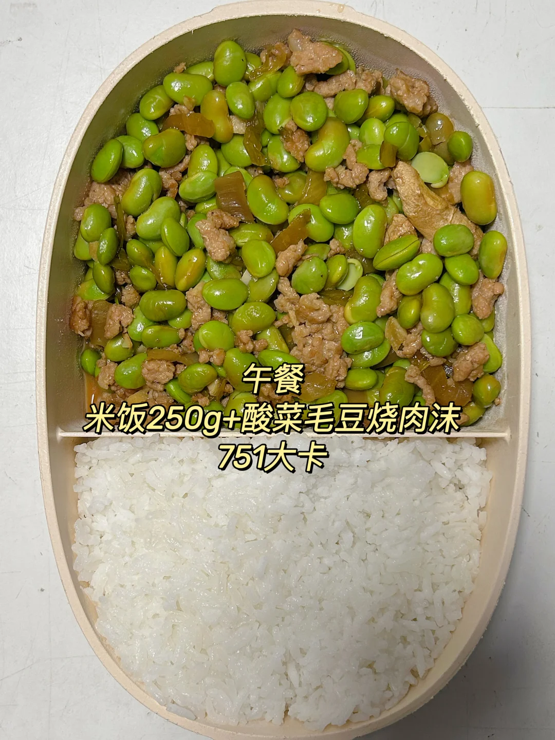午 米饭+酸菜肉沫烧毛豆