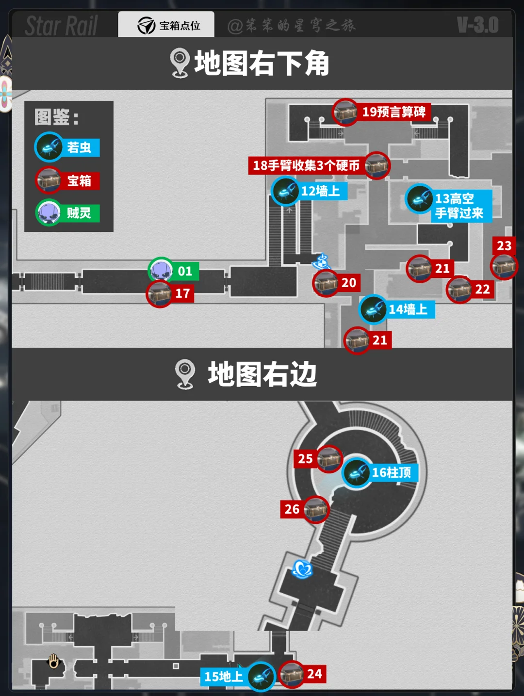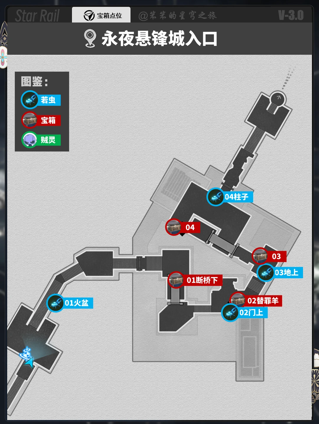 🐱大家好,我是笨笨的铲屎官 永夜悬锋城的宝箱点位来啦 包含宝箱、若虫、替罪羊、短矛、预言算碑的点位 这已经是3.0翁法罗斯的第三篇宝箱攻略啦 有需要的支持一下吧