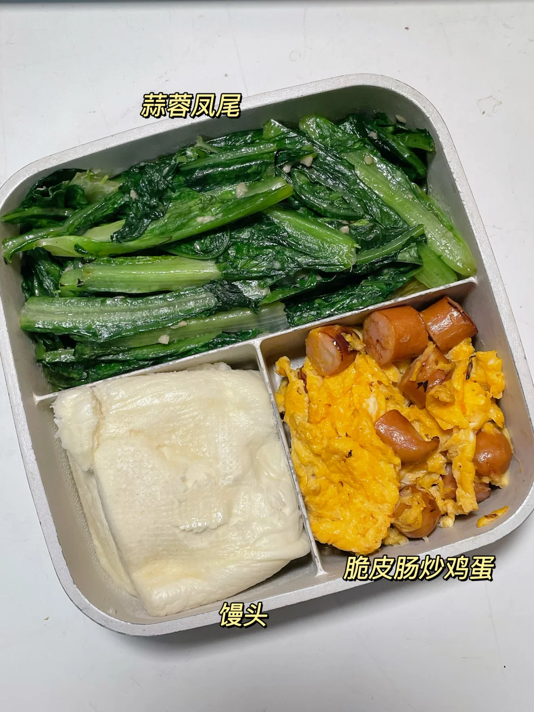 📍馒头+脆皮肠炒鸡蛋+蒜泥凤尾