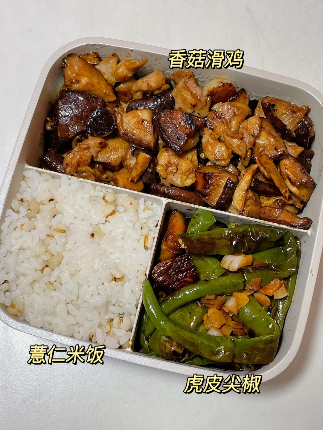 📍薏仁米饭+香菇滑鸡+虎皮尖椒