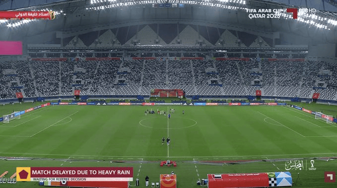虎扑12月19日讯FIFA官方宣布,2025年国际足联阿拉伯杯季军赛——由沙特阿拉伯对阵阿联酋——因体育场附近遭遇雷雨天气被终止。