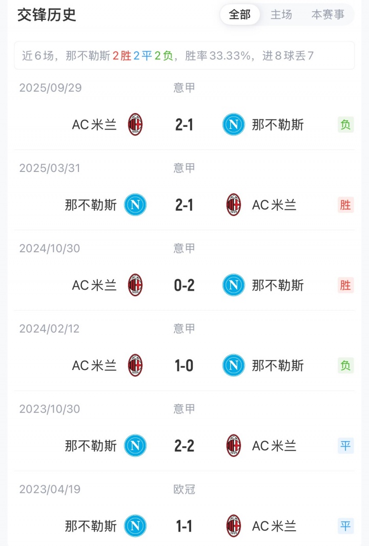 [交锋历史]