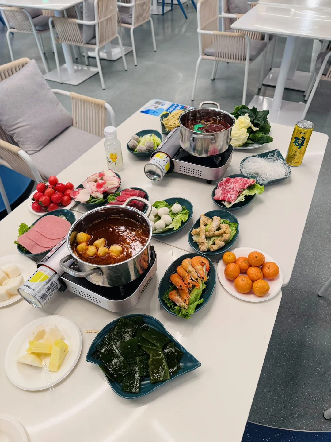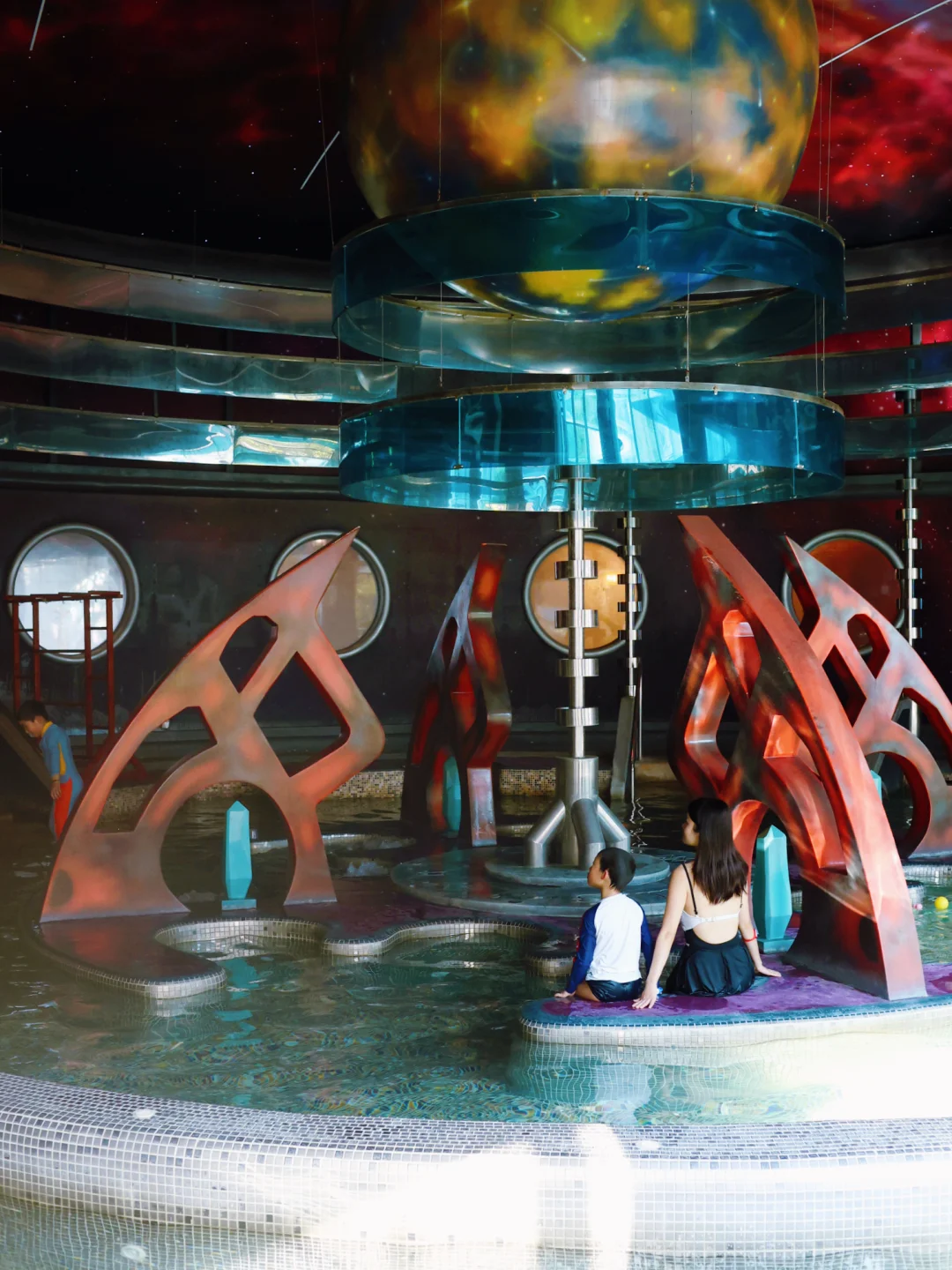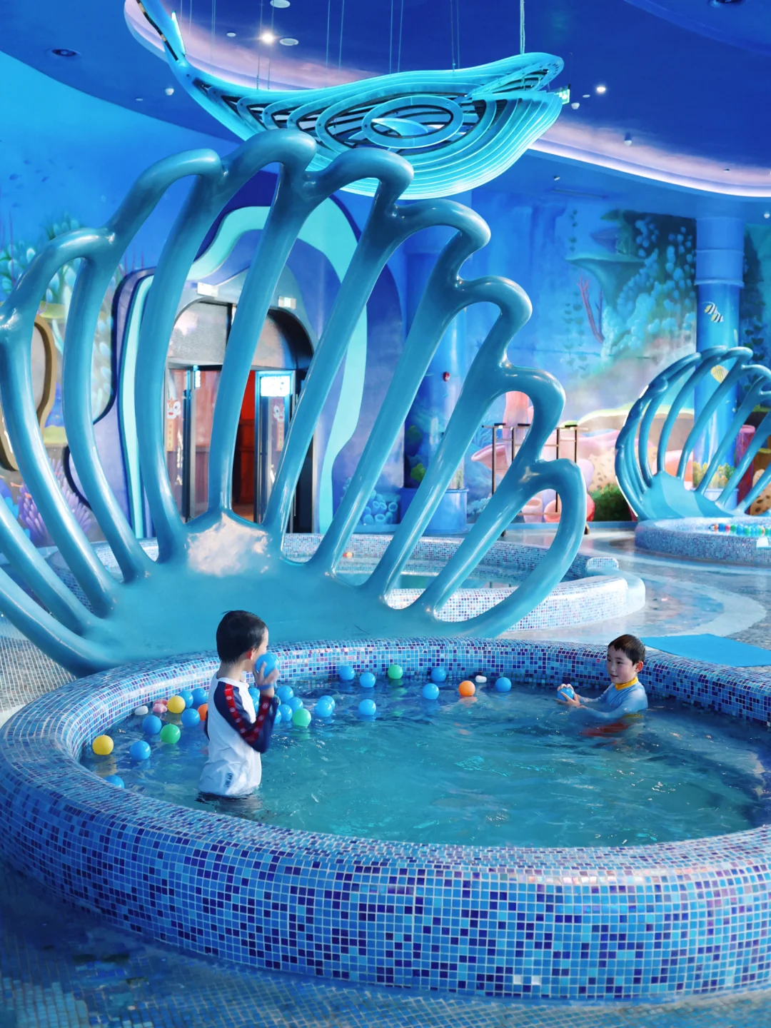 都是室内的很暖和,娃可以放心玩水,有四个主题的都很出片,我最喜欢的是溶洞主题的,泡累了可以去吃免费的水果饮料,推荐128元的火锅套餐,给了两个锅,分量大也很好吃