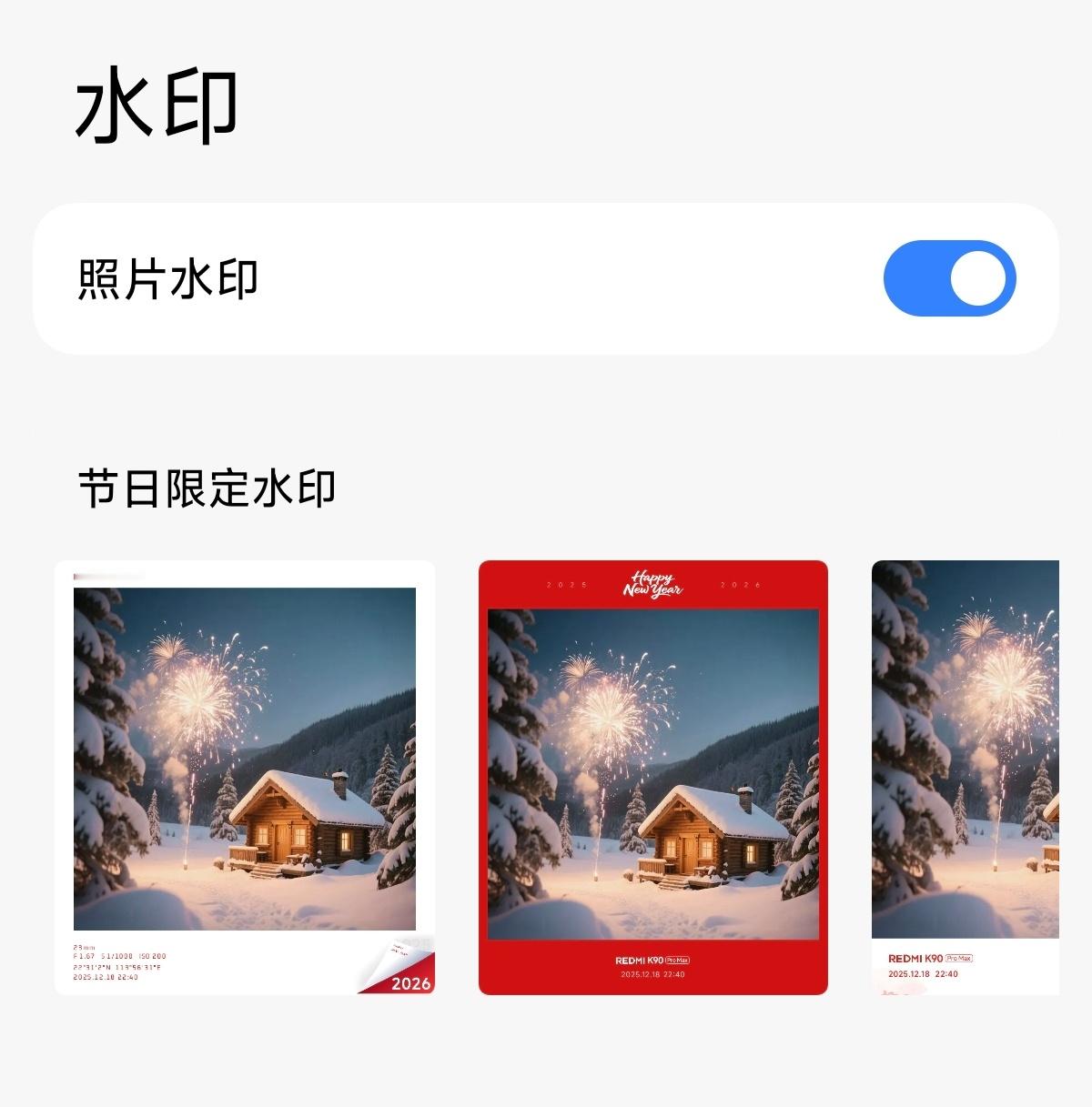 K90ProMax 用上了最新的限定季节水印,超多选择,挑花眼!