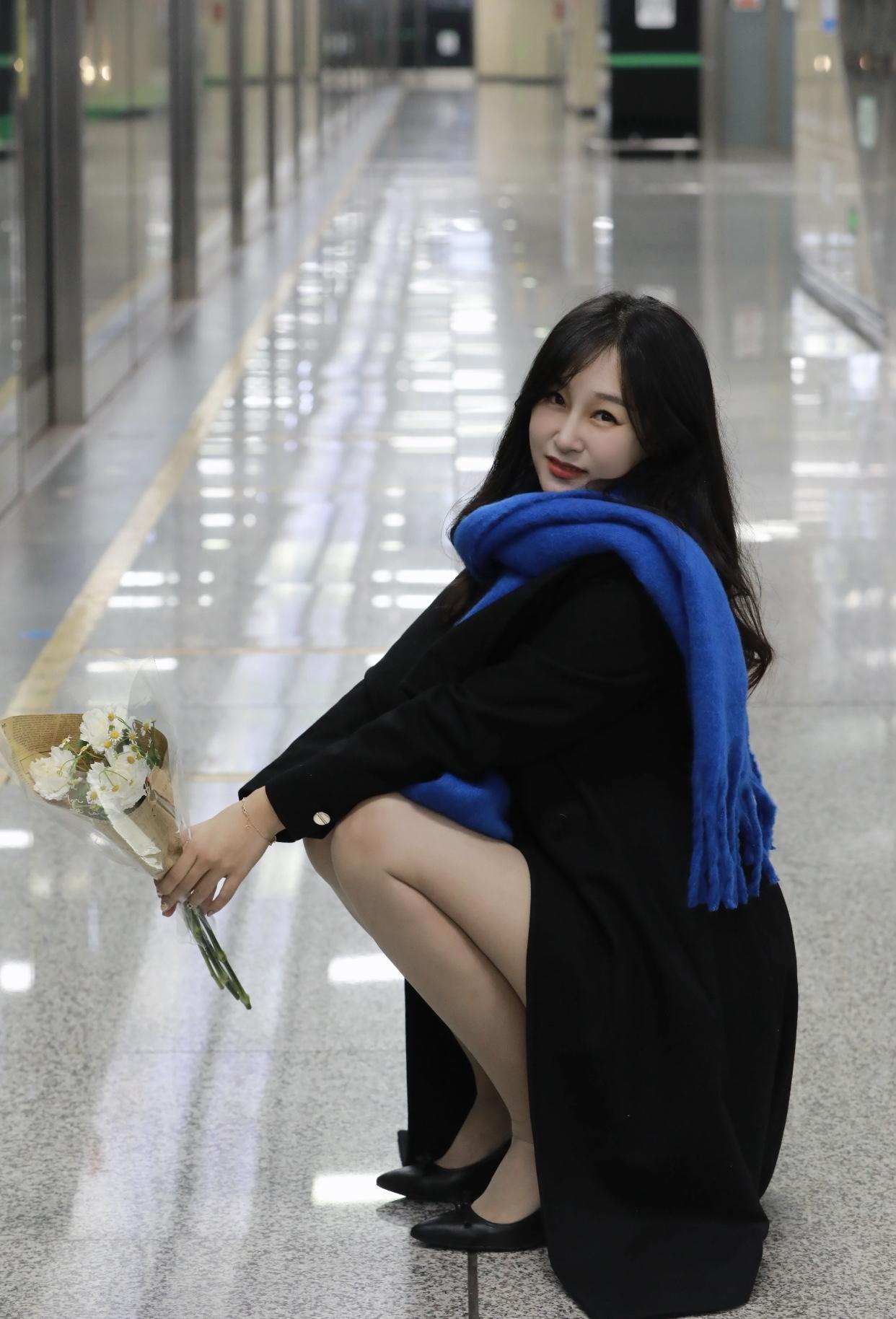 女人如何穿出含蓄的性感?在地铁站的静谧时光,手持鲜花,等待你的到来。