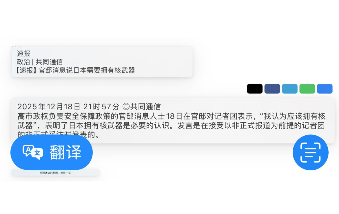 日媒快讯:官邸消息说,日本需要拥有核武器! 18日,在高市政权负责安全保障政策