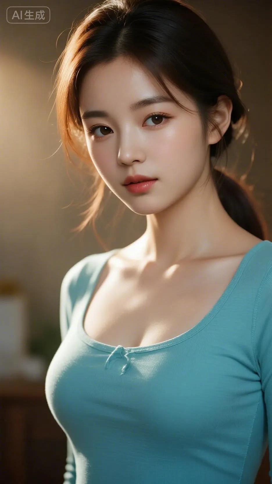 温柔甜美的少女,白皙肌肤,自然妆容,散发着优雅的气质。