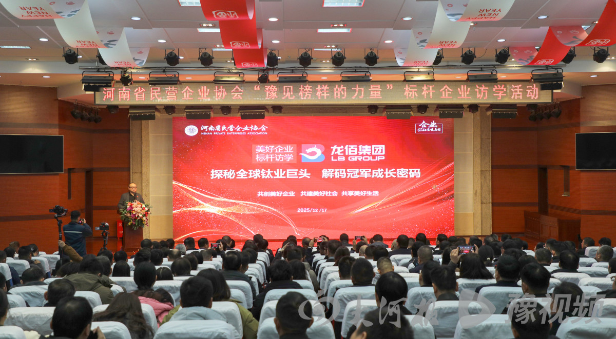 12月17日,在全球钛产业领军企业——龙佰集团焦作总部,河南省民营企业协会“豫见榜样的力量”标杆企业访学活动成功举办。约150家企业的250多名负责人齐聚龙佰,走进展厅、国家级企业技术中心,通过智库专家分享和座谈交流,厘清龙佰集团作为全球钛产业冠军从技术、管理到战略的完整运作逻辑,转化为可参考的行动思路,为搭建互学互鉴、共生共荣的平台奠定基础。