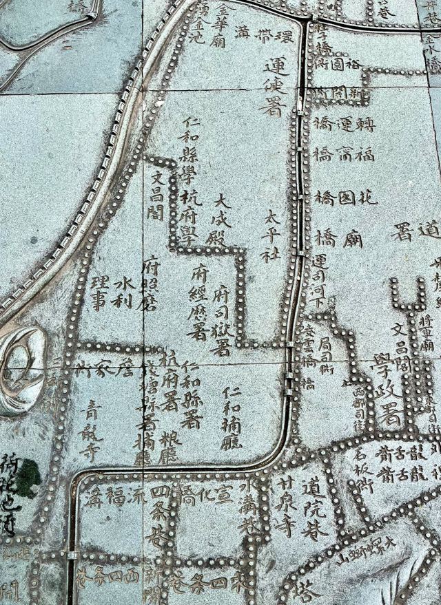 从地图上看,明清时期如果从运司河东跨过凌云桥,到了桥西便是府衙司狱署。它的北面是孔庙大成殿及杭州府学与仁和县学。它的西南面是勾山,那里是杭州府治所在。府衙与仁和钱塘两县署离得很近,重要衙门倚靠在一起,绝对有利于政务决策与号令统一。