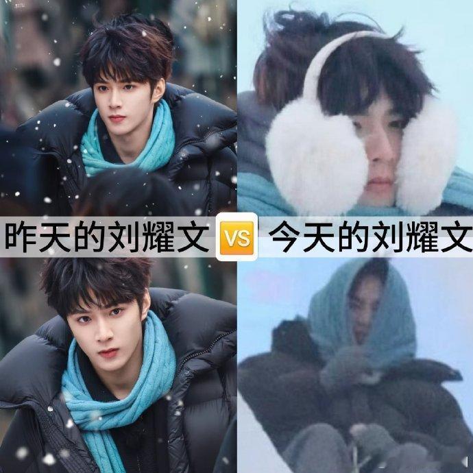 刘耀文耳罩当脸罩刘耀文脸罩耳罩变脸罩的搭配超有想法,保暖兼顾俏皮,少年的真实模样