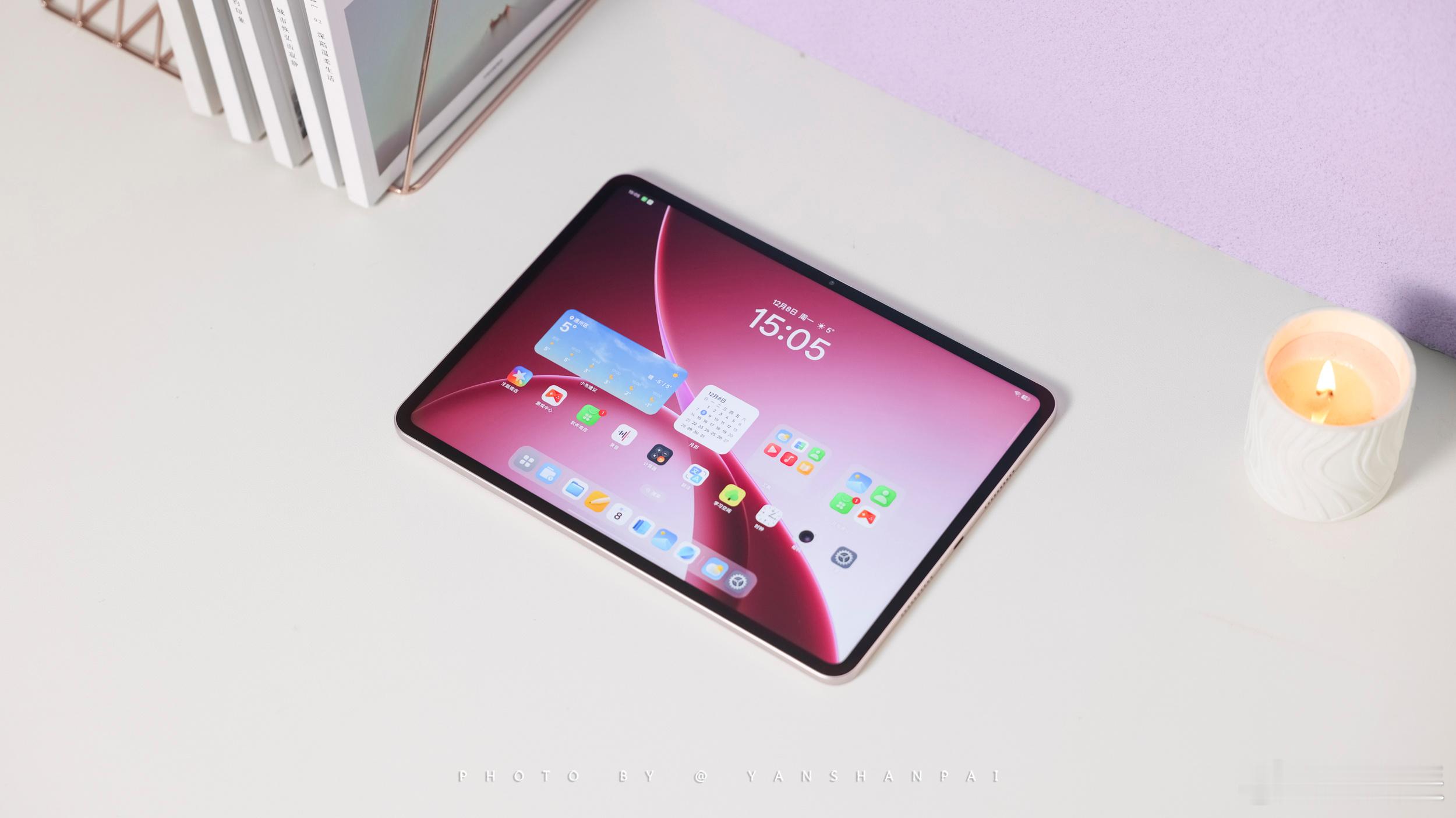 OPPOPadAir5图赏抢先看!星光粉配色是真特别,光线下真能看到“点点星光”,bulingbuling的外观则延续家族化设计,经典耐看硬件方便就不能多说了,但绝对值得期待